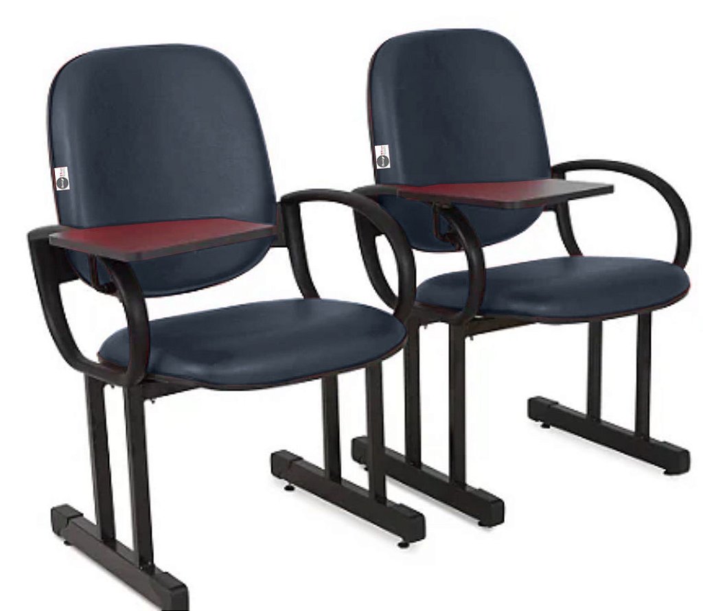 02 Cadeiras para Auditório, Cinemas, Teatros, Escolas e Faculdades com Prancheta Linha Dallas Auditório – Tonalidade da Cor do Assento e Encosto: Azul Marinho – Marca: Design Office Móveis – Revestimento do Assento e Encosto: Material Sintético