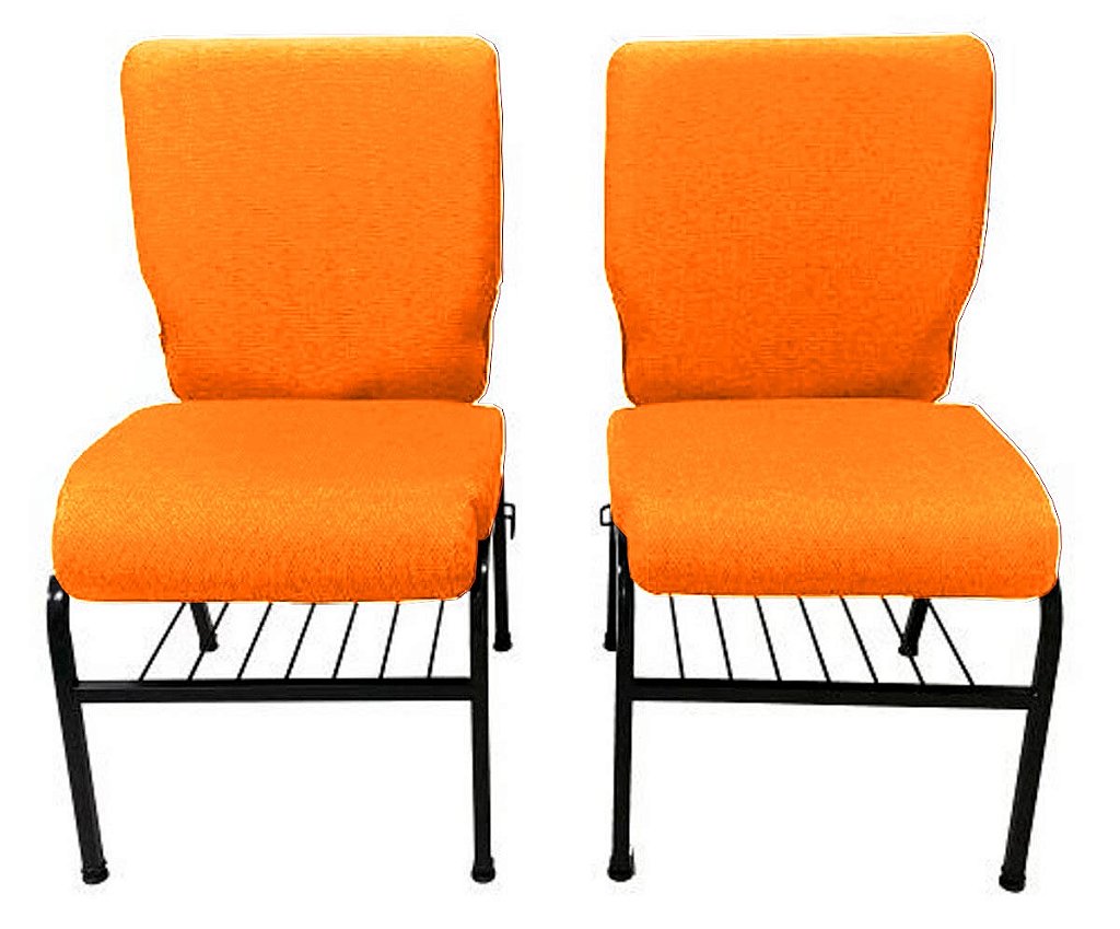 02 UNIDADES de Cadeiras para Igrejas com porta Bíblia e porta Cálice da Santa Ceia – Com Gancho lateral para acoplar em outra cadeira – Modelo Diretor – Linha Igreja – Cor: Laranja – Tonalidade da Cor: Laranja – Marca: Design Office Móveis