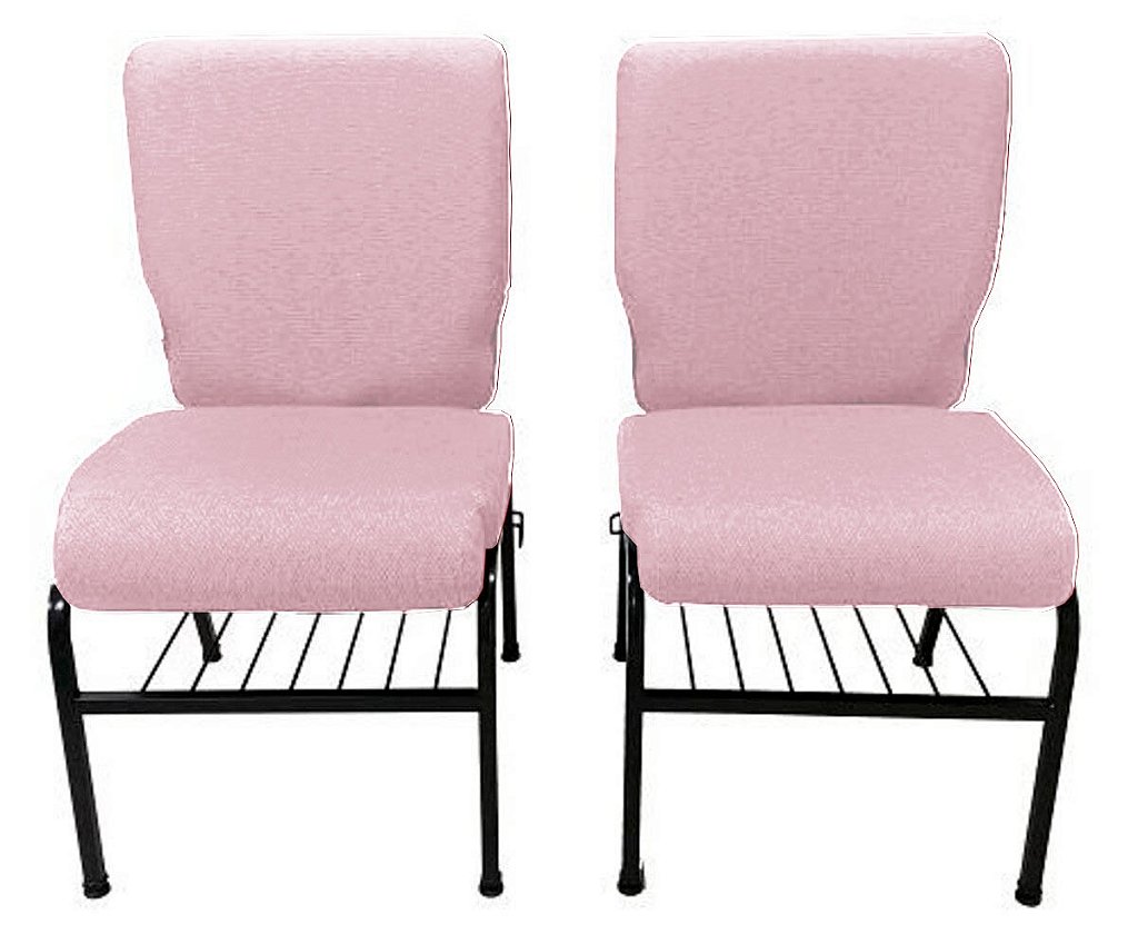 02 Cadeiras para Igrejas c/ Porta Biblía e Porta Cálice Rosa