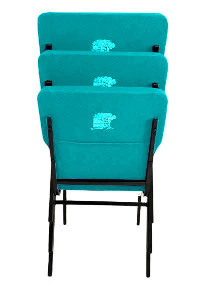 03 Cadeiras Empilhável para Igrejas Evangélicas Linha Church com porta Envelopes atrás do Encosto – Tonalidade da Cor do Assento e Encosto:  Verde Água –  Marca: Design Office Móveis – Revestimento do Assento e Encosto: Material Sintético – Opcional: Com ou sem bordado atrás do encosto da cadeira, a critério do cliente.