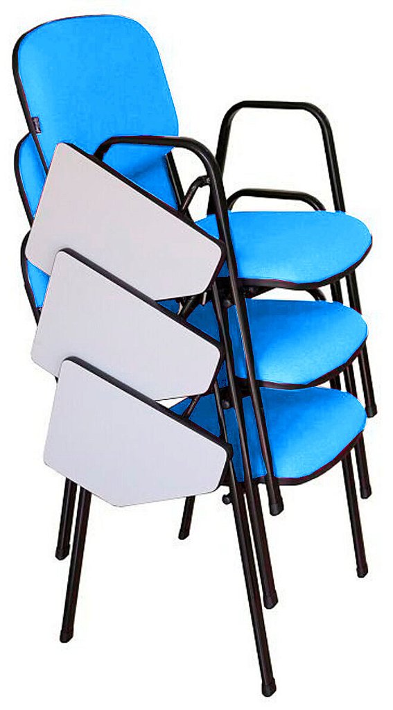 Peso da cadeira: 6,40kg – Empilhável com até 7 cadeiras sem a prancheta