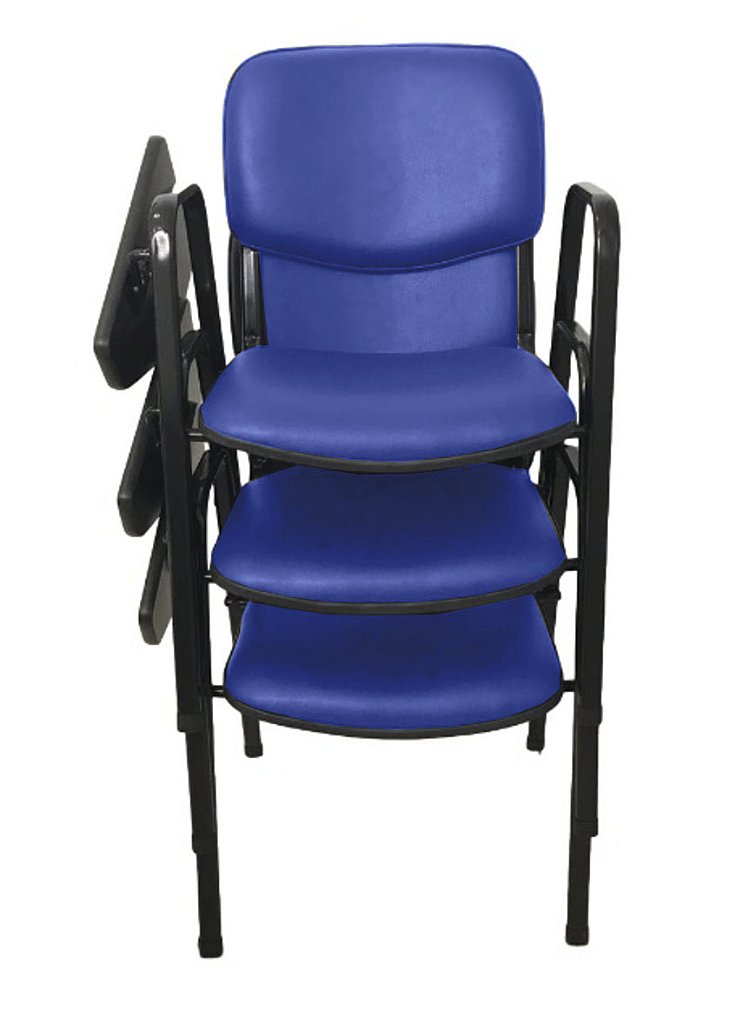 Peso da cadeira: 6,40kg – Empilhável com até 7 cadeiras sem a prancheta