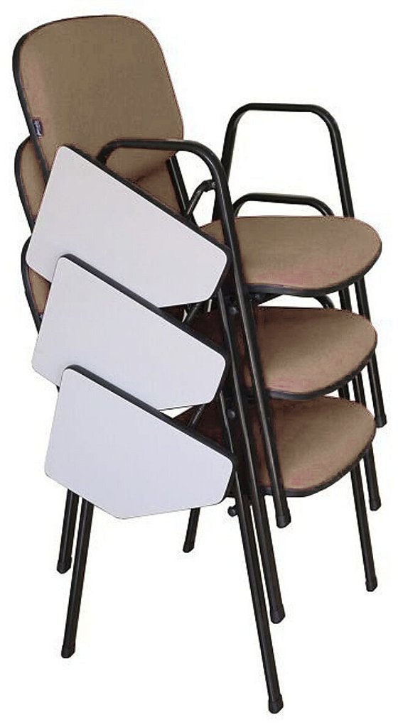 Peso da cadeira: 6,40kg – Empilhável com até 7 cadeiras sem a prancheta