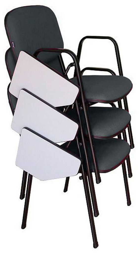 Peso da cadeira: 6,40kg – Empilhável com até 7 cadeiras sem a prancheta
