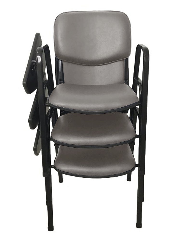 Peso da cadeira: 6,40kg – Empilhável com até 7 cadeiras sem a prancheta