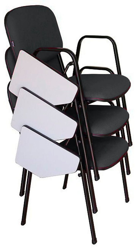 Peso da cadeira: 6,40kg – Empilhável com até 7 cadeiras sem a prancheta