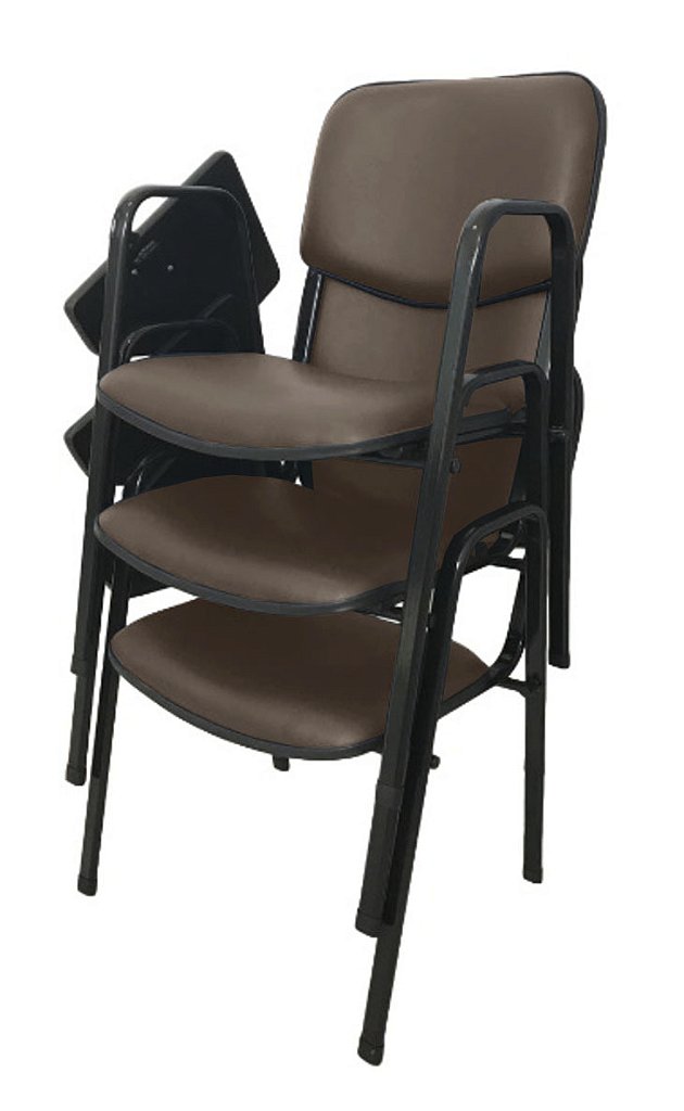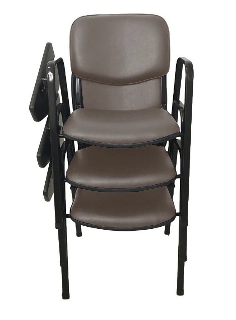 Peso da cadeira: 6,40kg – Empilhável com até 7 cadeiras sem a prancheta