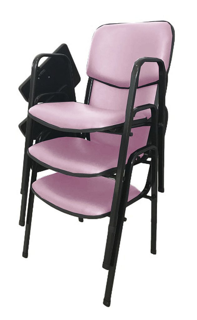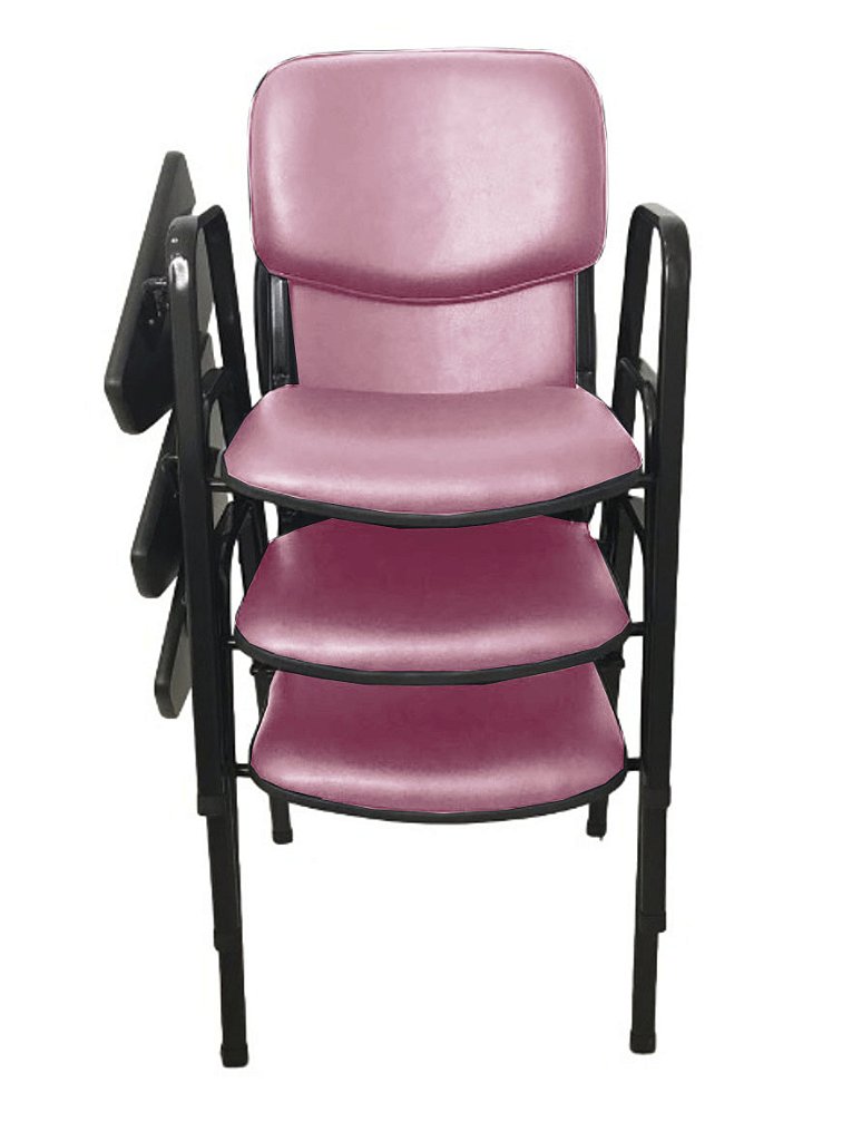 Peso da cadeira: 6,40kg – Empilhável com até 7 cadeiras sem a prancheta