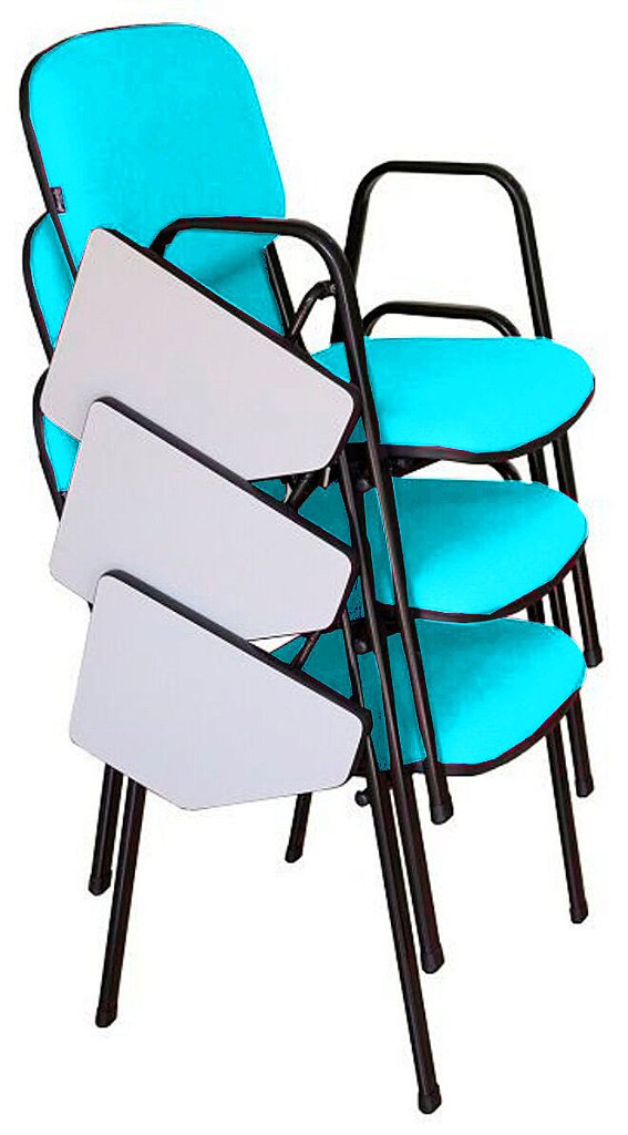 Peso da cadeira: 6,40kg – Empilhável com até 7 cadeiras sem a prancheta