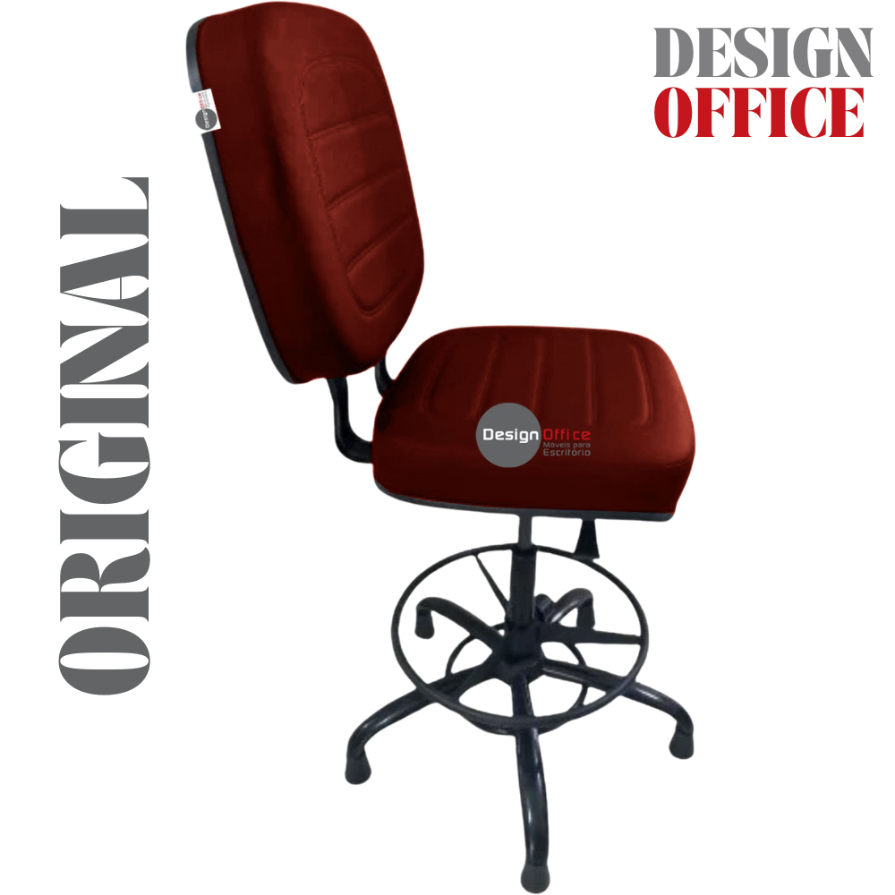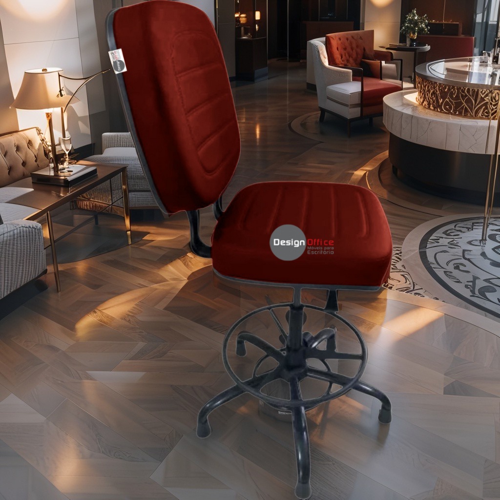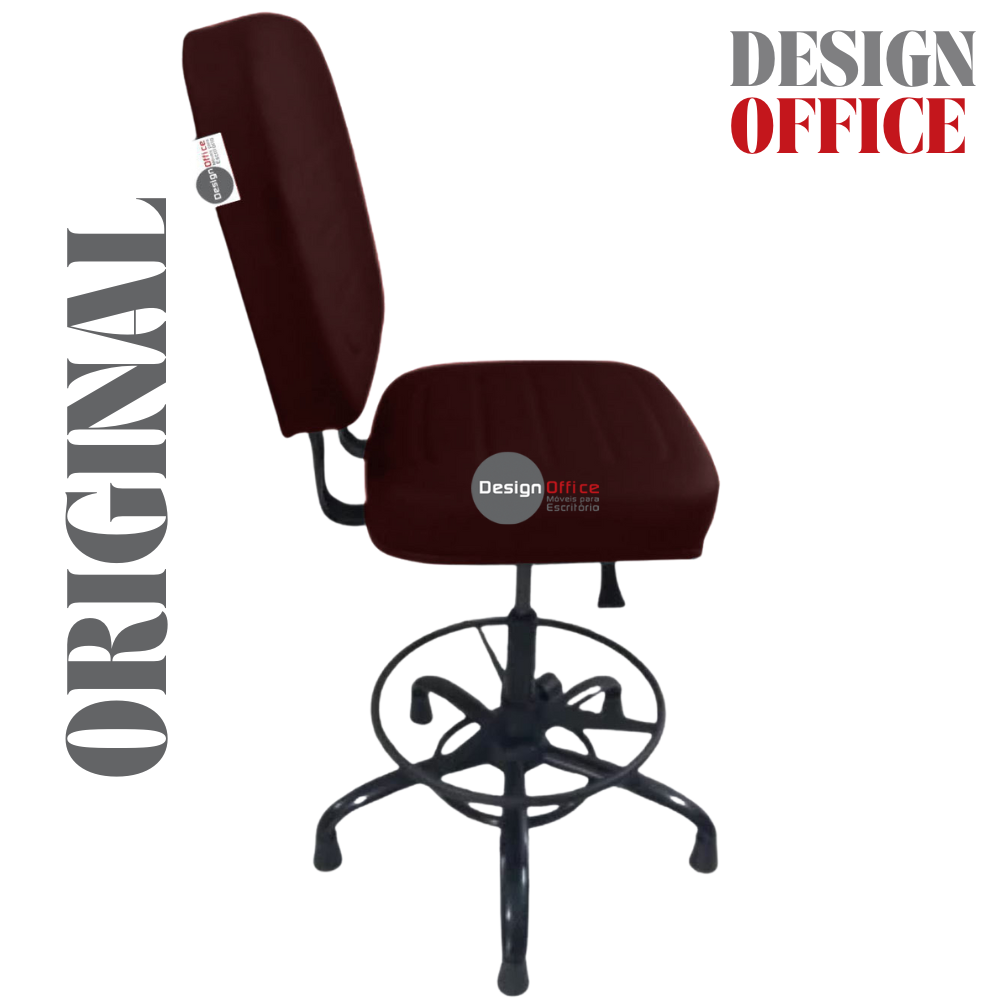 Cadeira Caixa Alta com Aro que Suporta até 250kg Giratória para Porteiros e Obesos, ideal para Portaria de Prédios e Condomínios Tonalidade da Cor do Assento e Encosto: Vermelho Vinho Marca: Design Office Móveis – Revestimento do Assento e Encosto: Material Sintético – Linha Plus Size
