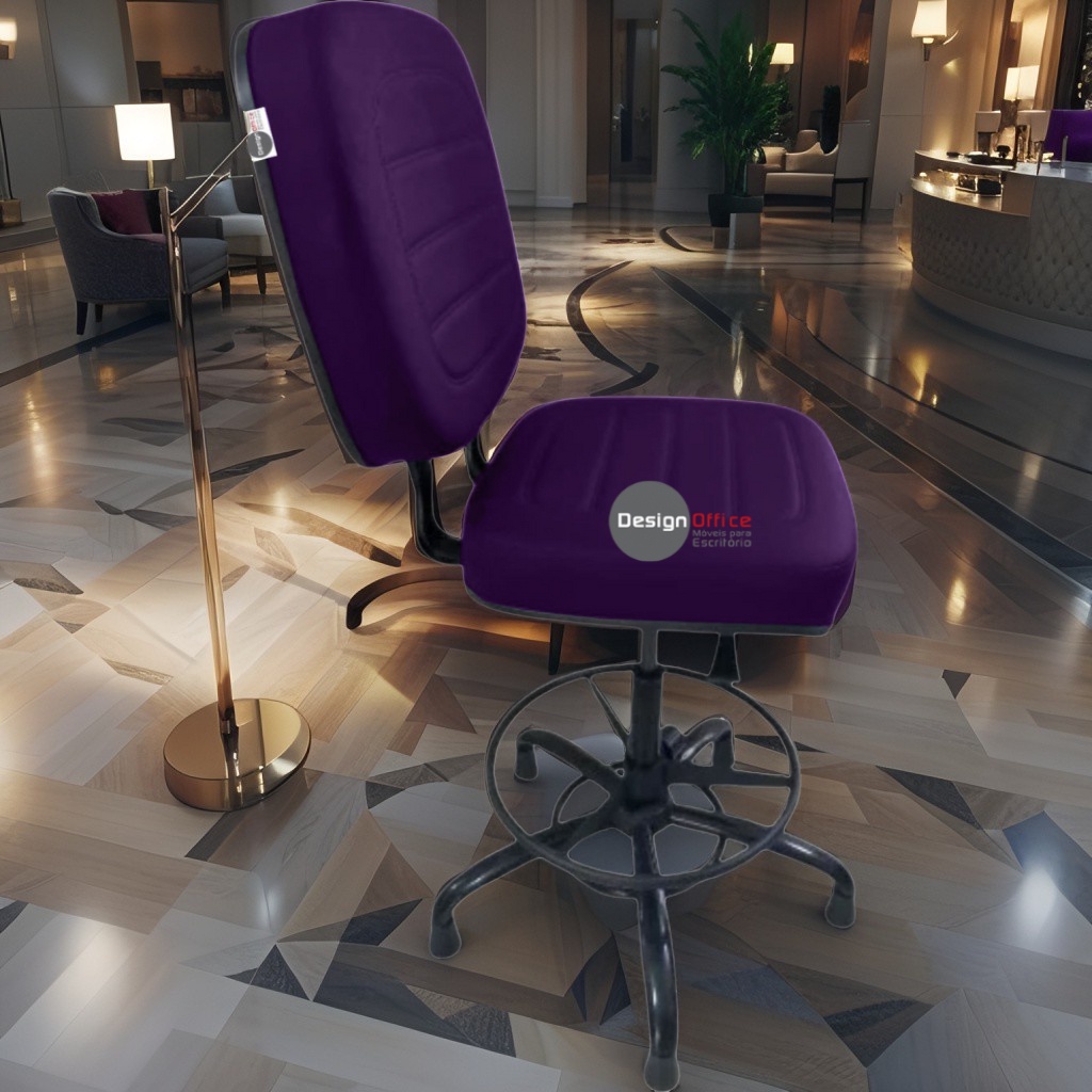 Cadeira Caixa Alta com Aro que Suporta até 250kg Giratória para Porteiros e Obesos, ideal para Portaria de Prédios e Condomínios Tonalidade da Cor do Assento e Encosto: Roxo Marca: Design Office Móveis – Revestimento do Assento e Encosto: Material Sintético – Linha Plus Size