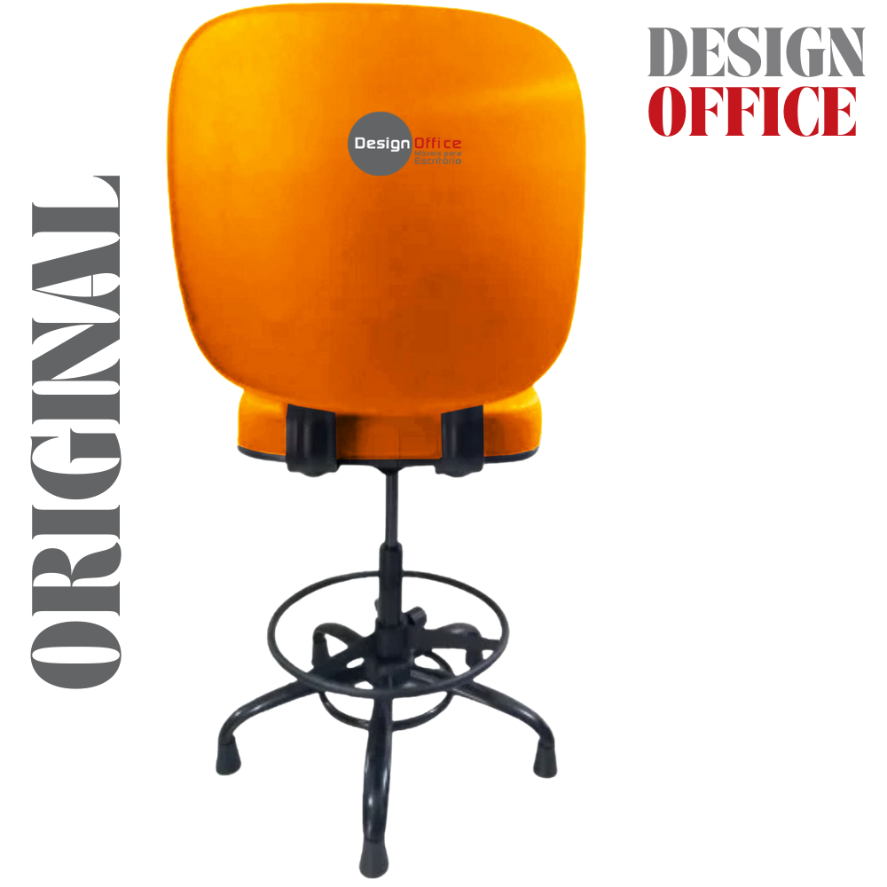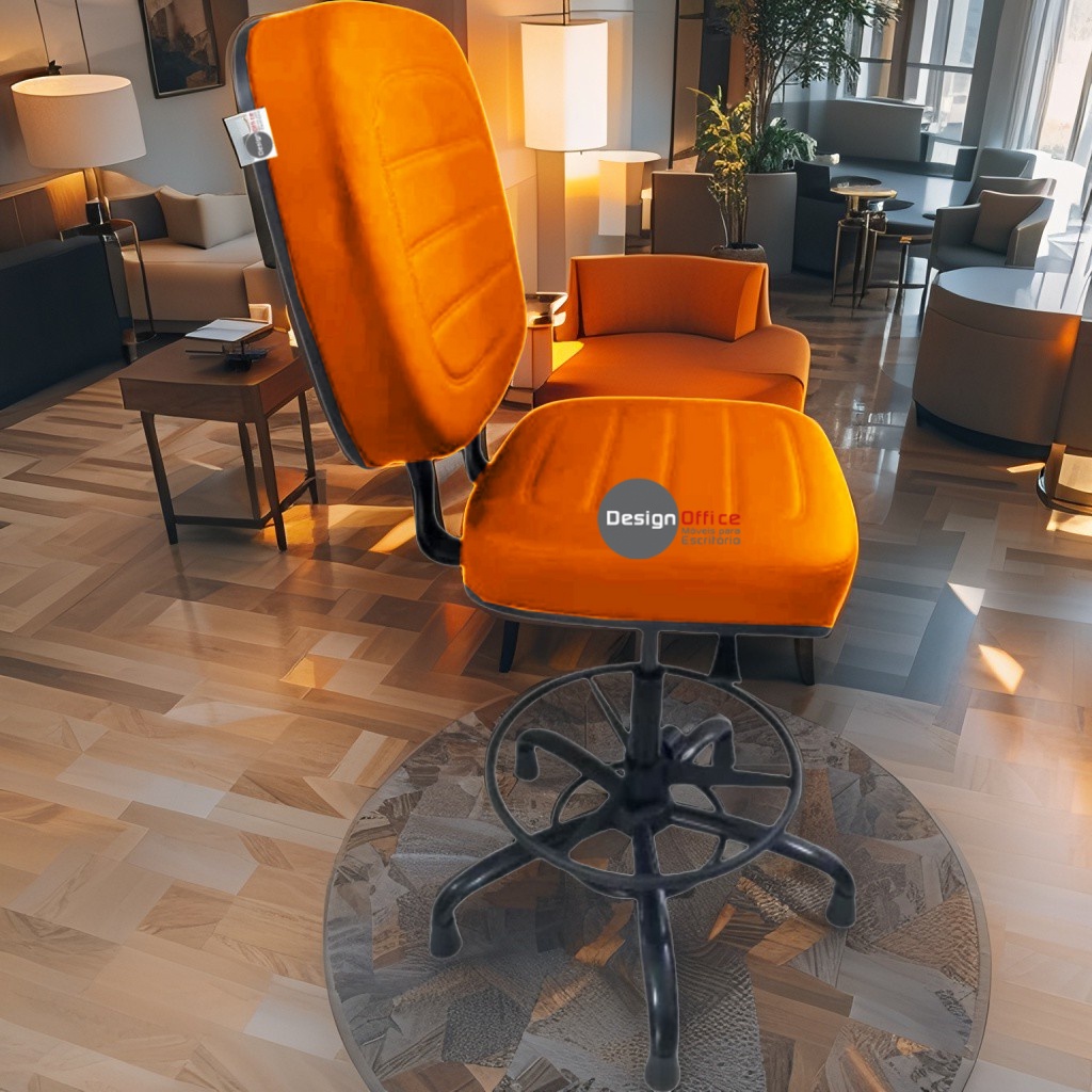 Cadeira Caixa Alta com Aro que Suporta até 250kg Giratória para Porteiros e Obesos, ideal para Portaria de Prédios e Condomínios Tonalidade da Cor do Assento e Encosto: Laranja Marca: Design Office Móveis – Revestimento do Assento e Encosto: Material Sintético – Linha Plus Size