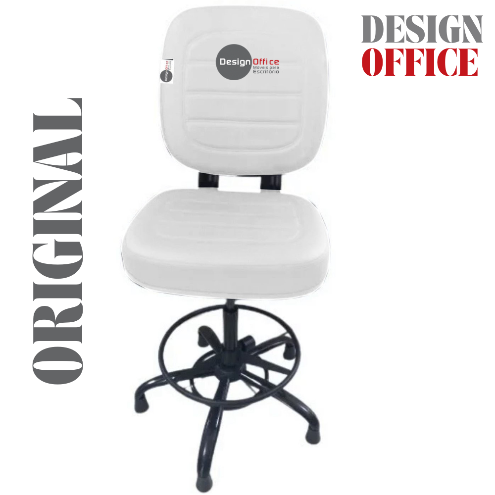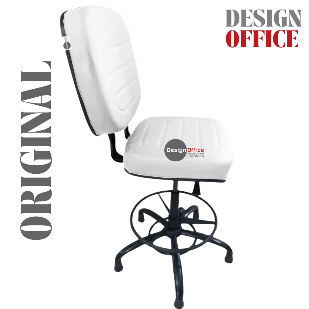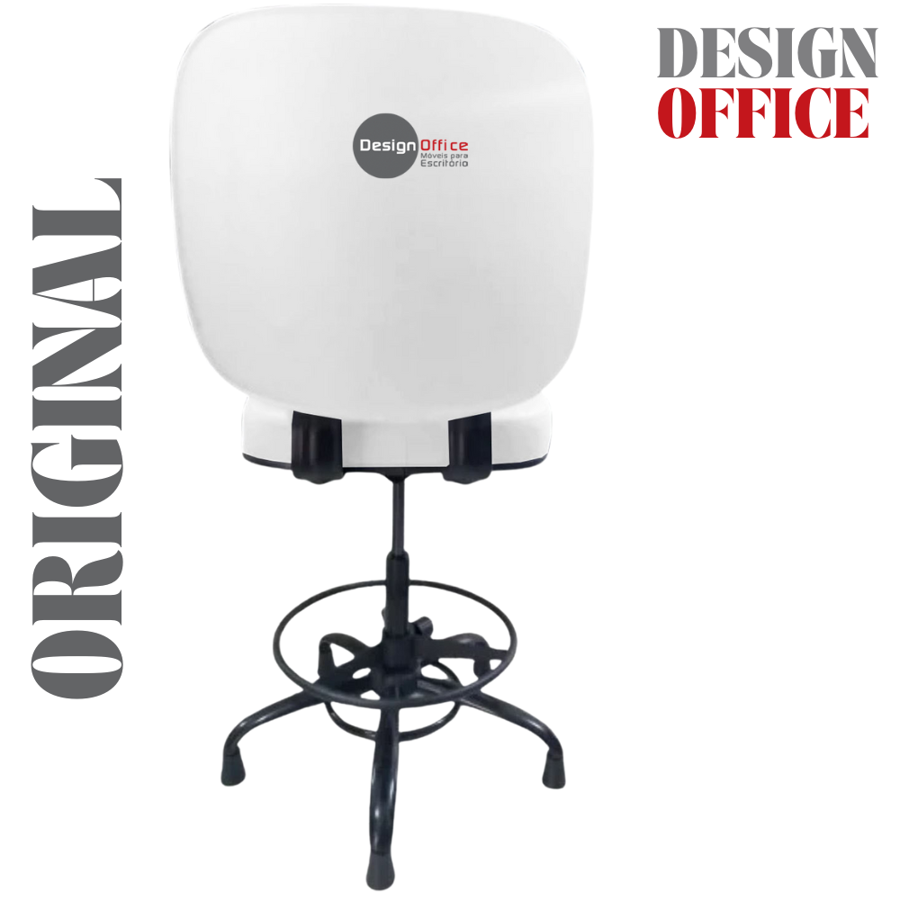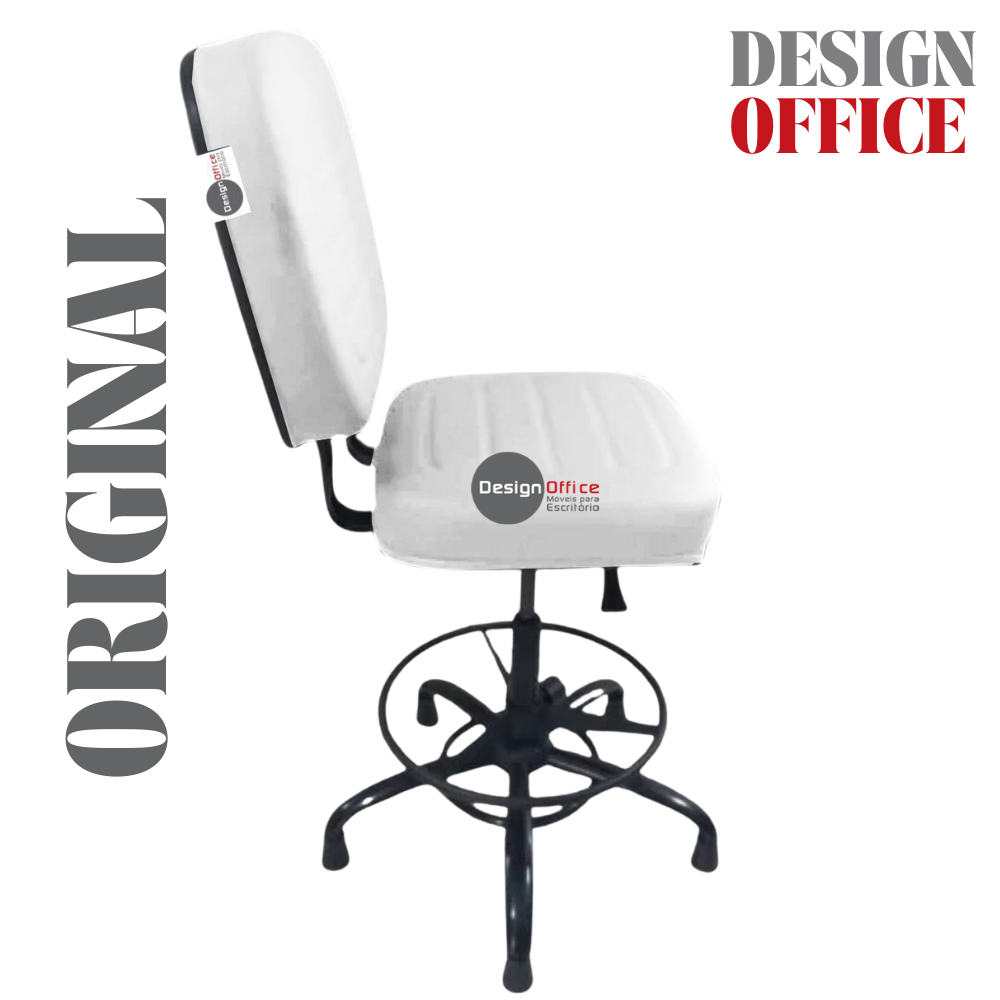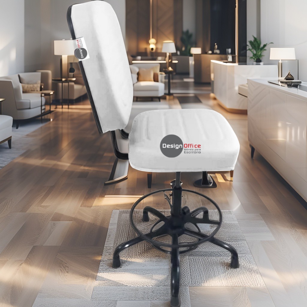 Cadeira Caixa Alta com Aro que Suporta até 250kg Giratória para Porteiros e Obesos, ideal para Portaria de Prédios e Condomínios Tonalidade da Cor do Assento e Encosto: Branco Marca: Design Office Móveis – Revestimento do Assento e Encosto: Material Sintético – Linha Plus Size