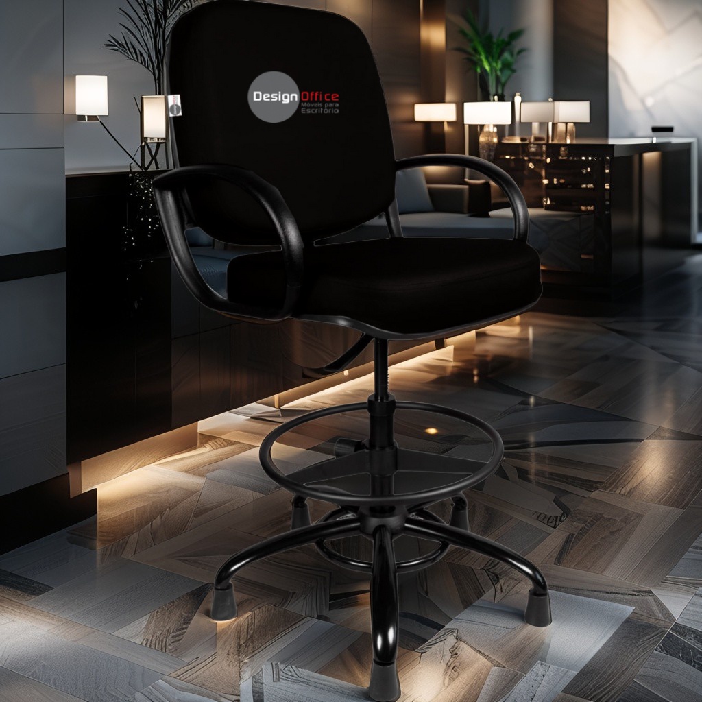 Cadeira Caixa Alta com Aro que Suporta até 250kg Giratória para Porteiros e Obesos, ideal para Portaria de Prédios e Condomínios Tonalidade da Cor do Assento e Encosto: Marrom Café Marca: Design Office Móveis – Revestimento do Assento e Encosto: Material Sintético – Linha Plus Size