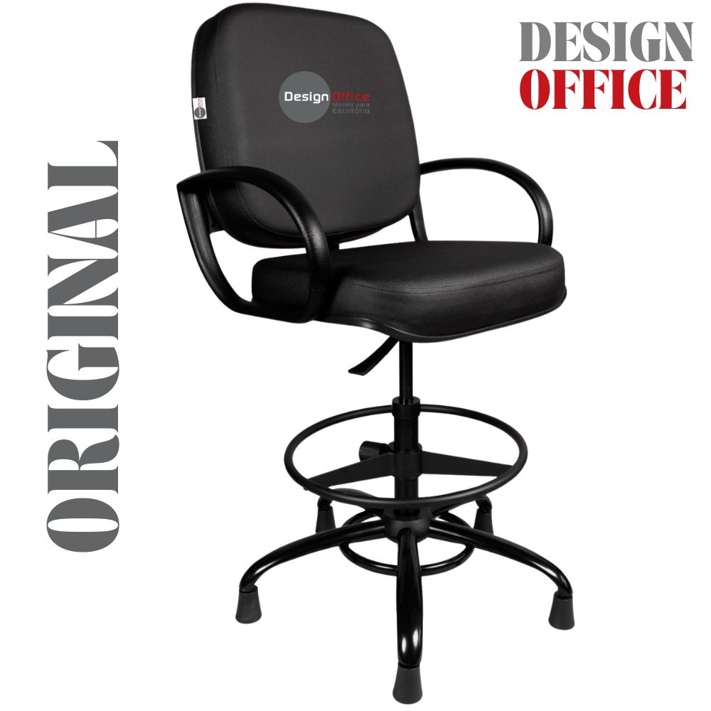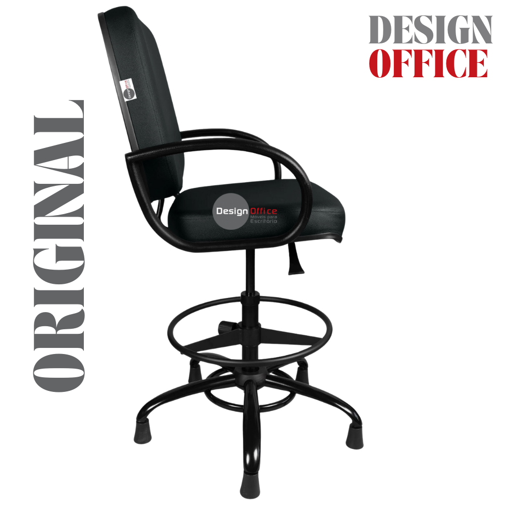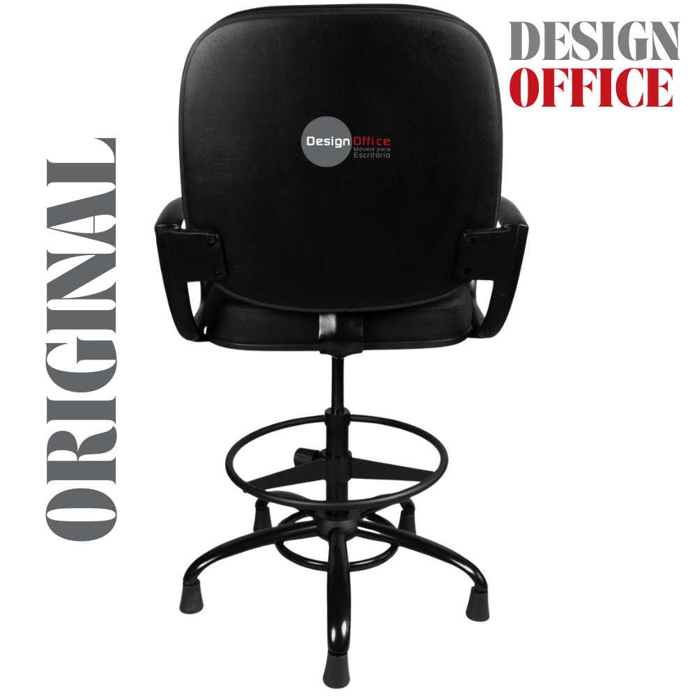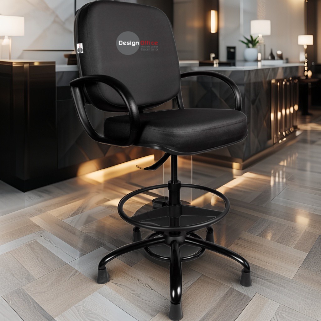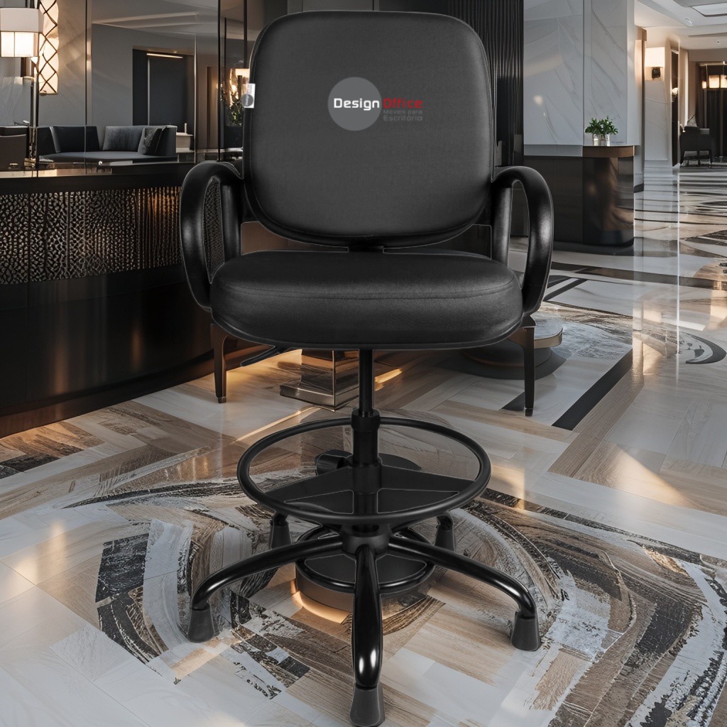 Cadeira Caixa Alta com Aro que Suporta até 250kg Giratória para Porteiros e Obesos, ideal para Portaria de Prédios e Condomínios Tonalidade da Cor do Assento e Encosto: Preto Marca: Design Office Móveis – Revestimento do Assento e Encosto: Material Sintético – Linha Plus Size