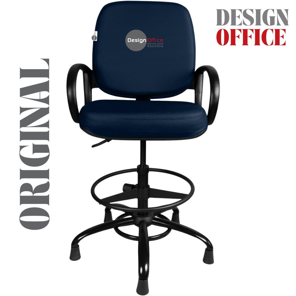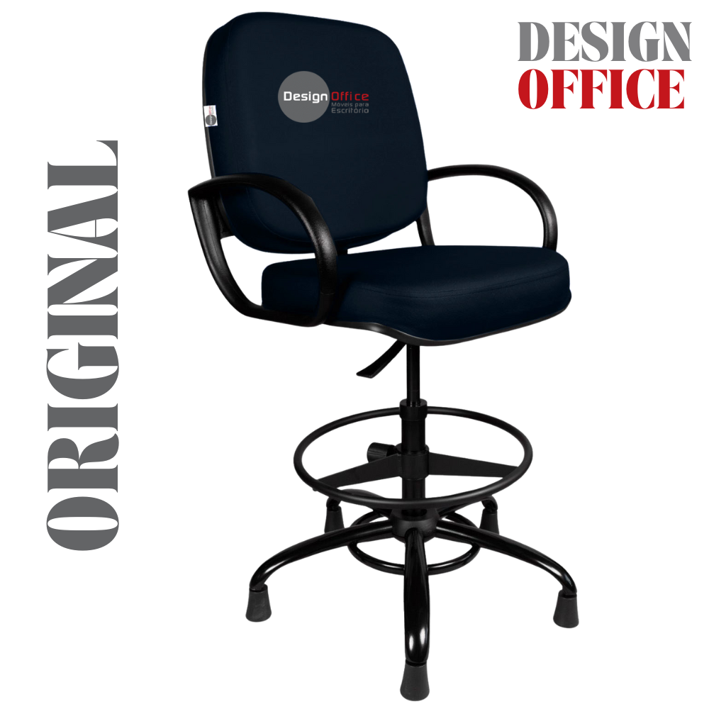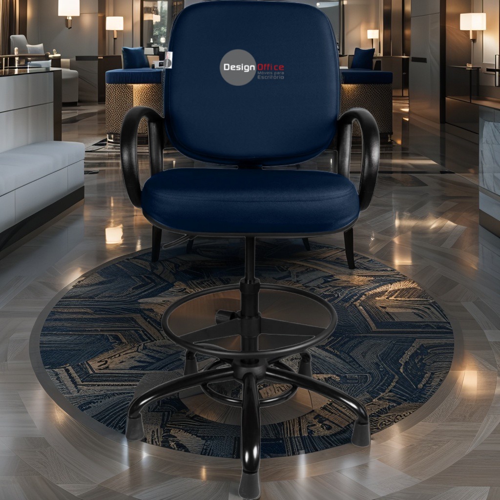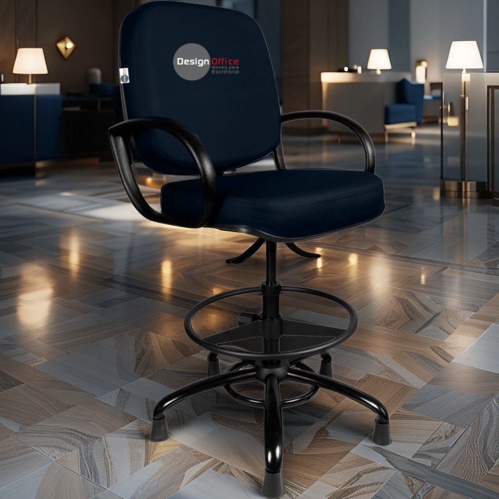 Cadeira Caixa Alta com Aro que Suporta até 250kg Giratória para Porteiros e Obesos, ideal para Portaria de Prédios e Condomínios Tonalidade da Cor do Assento e Encosto: Azul Marinho Marca: Design Office Móveis – Revestimento do Assento e Encosto: Material Sintético – Linha Plus Size