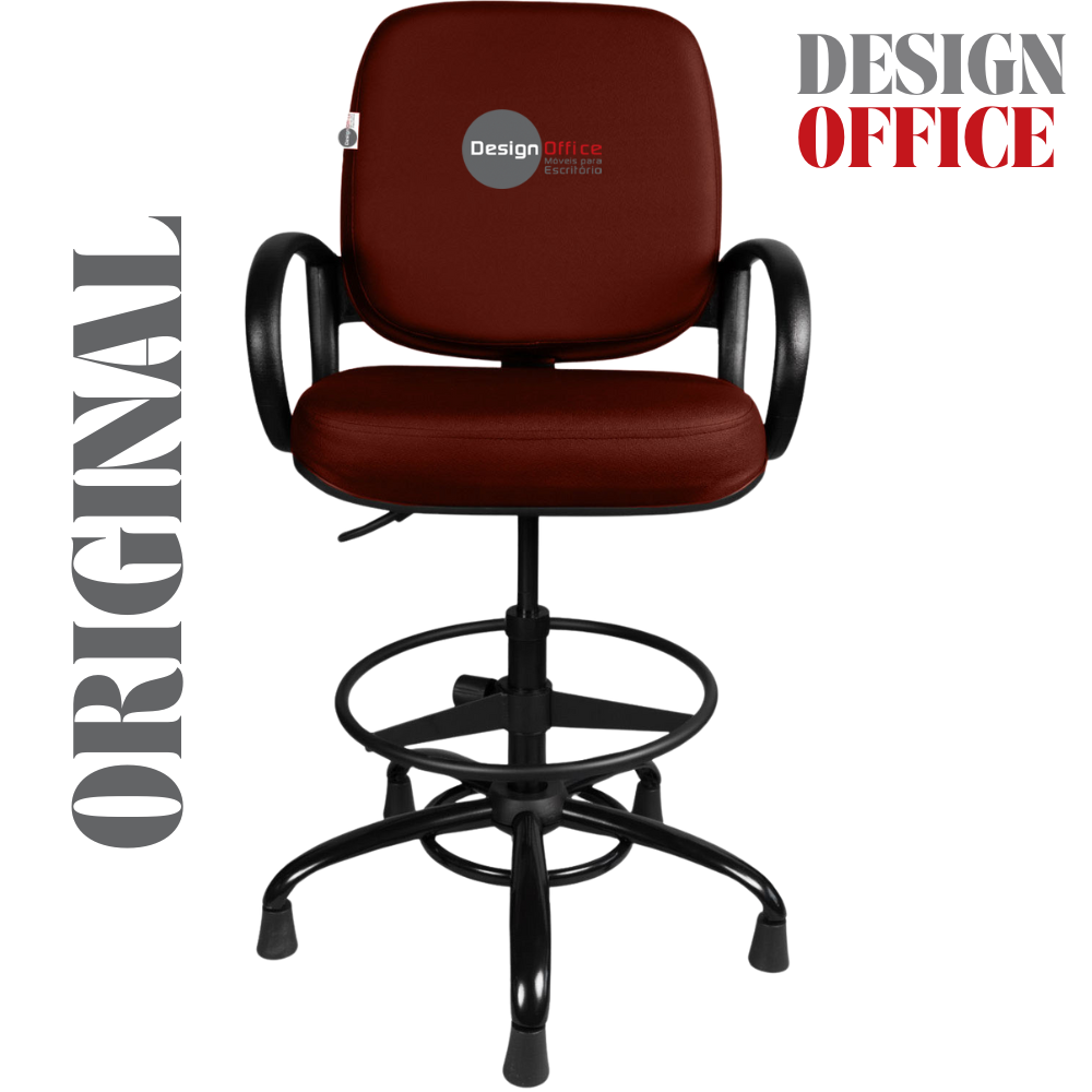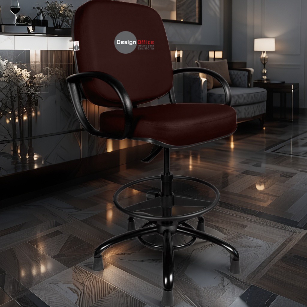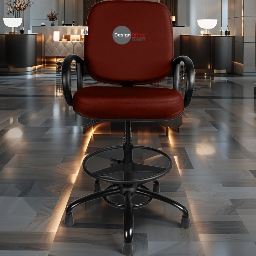 Cadeira Caixa Alta com Aro que Suporta até 250kg Giratória para Porteiros e Obesos, ideal para Portaria de Prédios e Condomínios Tonalidade da Cor do Assento e Encosto: Vermelho Vinho Marca: Design Office Móveis – Revestimento do Assento e Encosto: Material Sintético – Linha Plus Size