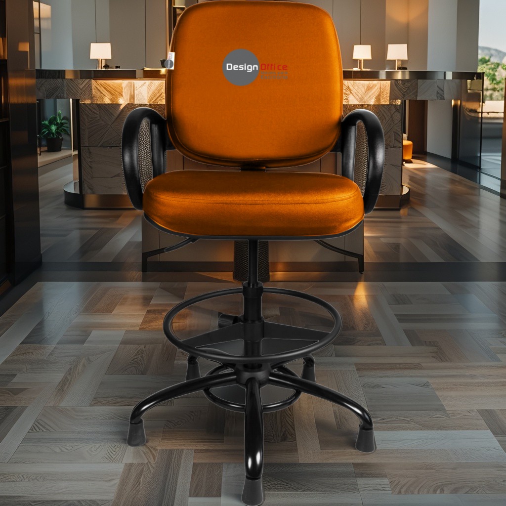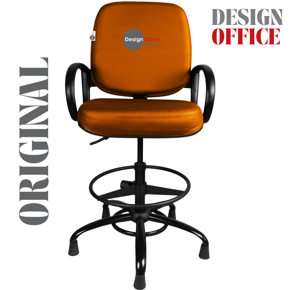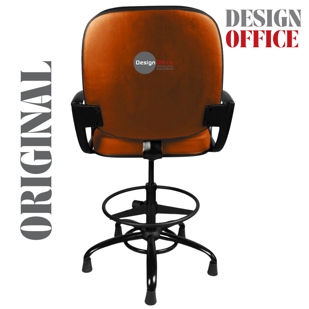 Cadeira Caixa Alta com Aro que Suporta até 250kg Giratória para Porteiros e Obesos, ideal para Portaria de Prédios e Condomínios Tonalidade da Cor do Assento e Encosto: Caramelo Marca: Design Office Móveis – Revestimento do Assento e Encosto: Material Sintético – Linha Plus Size