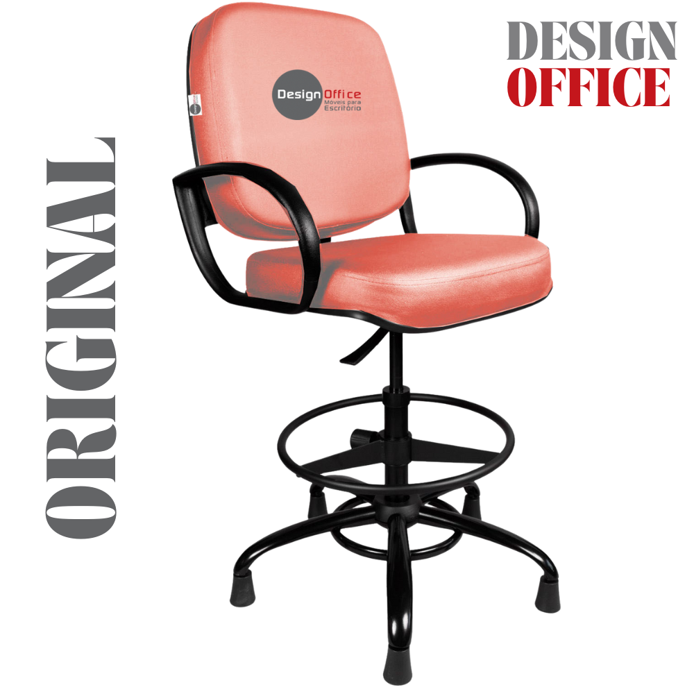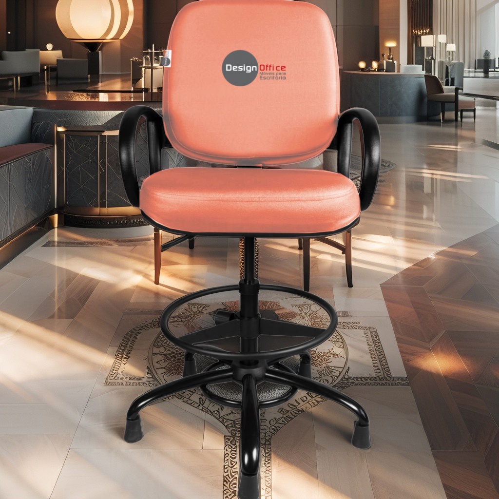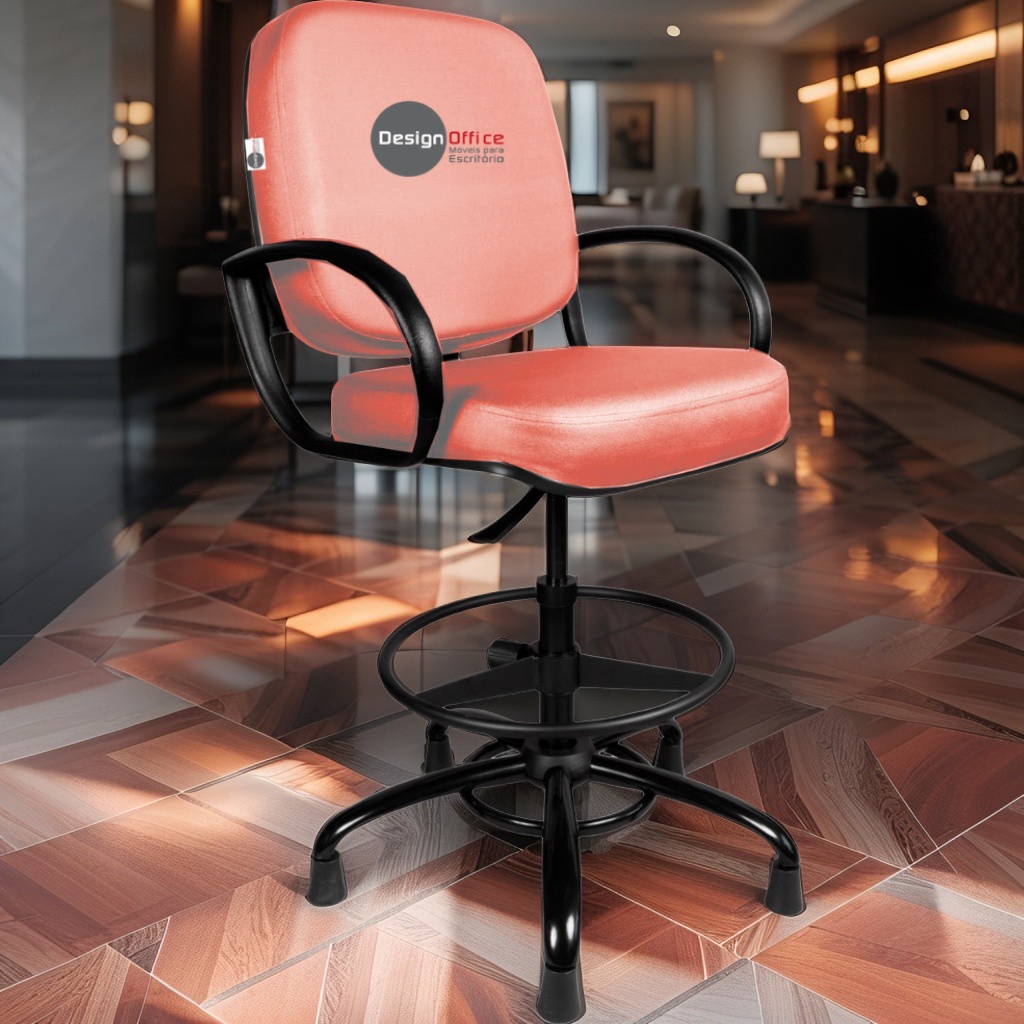 Cadeira Caixa Alta com Aro que Suporta até 250kg Giratória para Porteiros e Obesos, ideal para Portaria de Prédios e Condomínios Tonalidade da Cor do Assento e Encosto: Vermelho Telha Marca: Design Office Móveis – Revestimento do Assento e Encosto: Material Sintético – Linha Plus Size