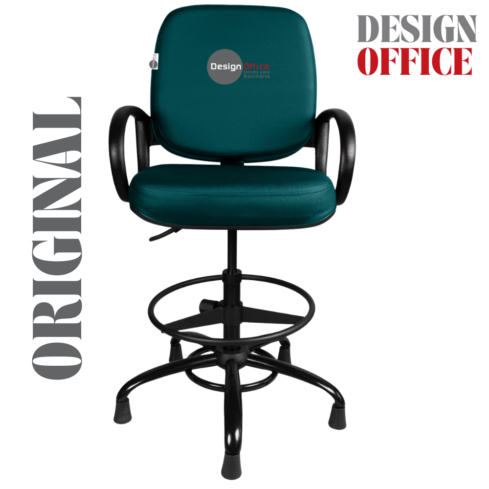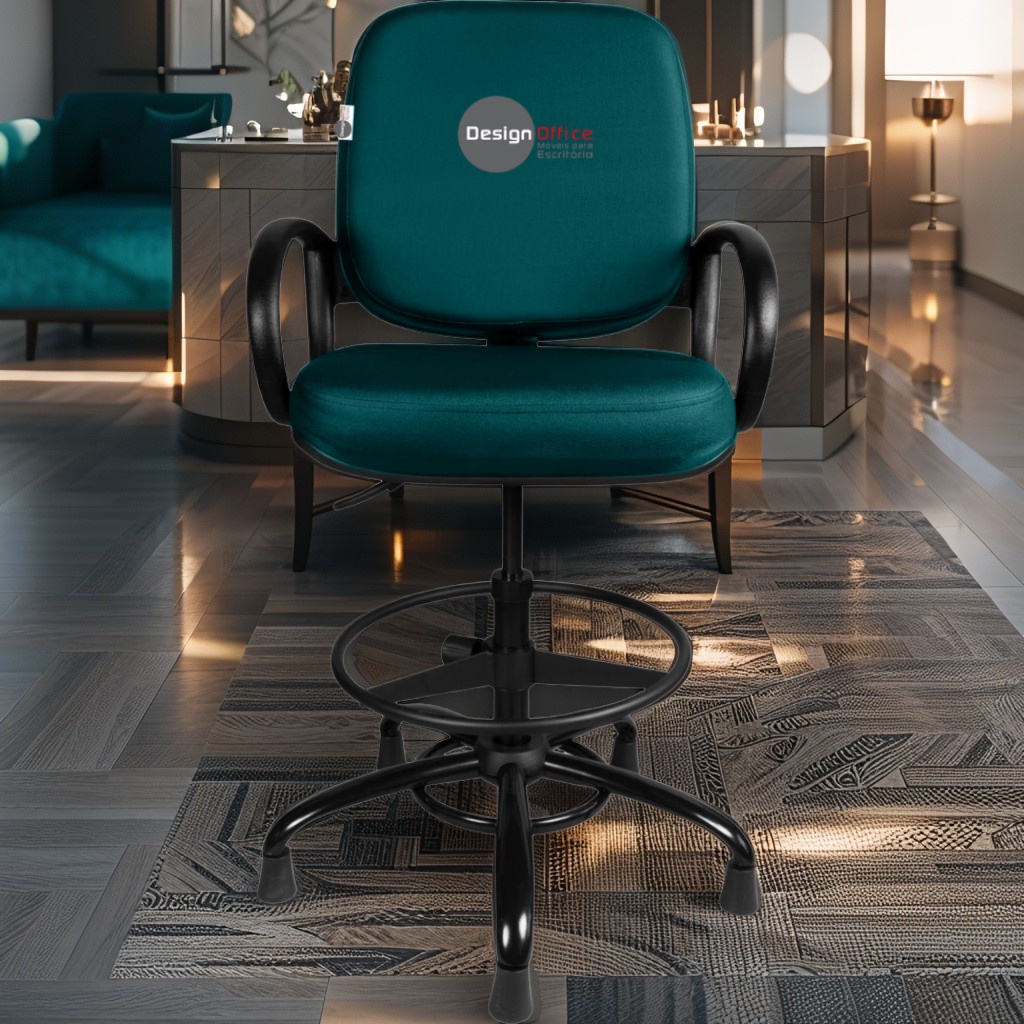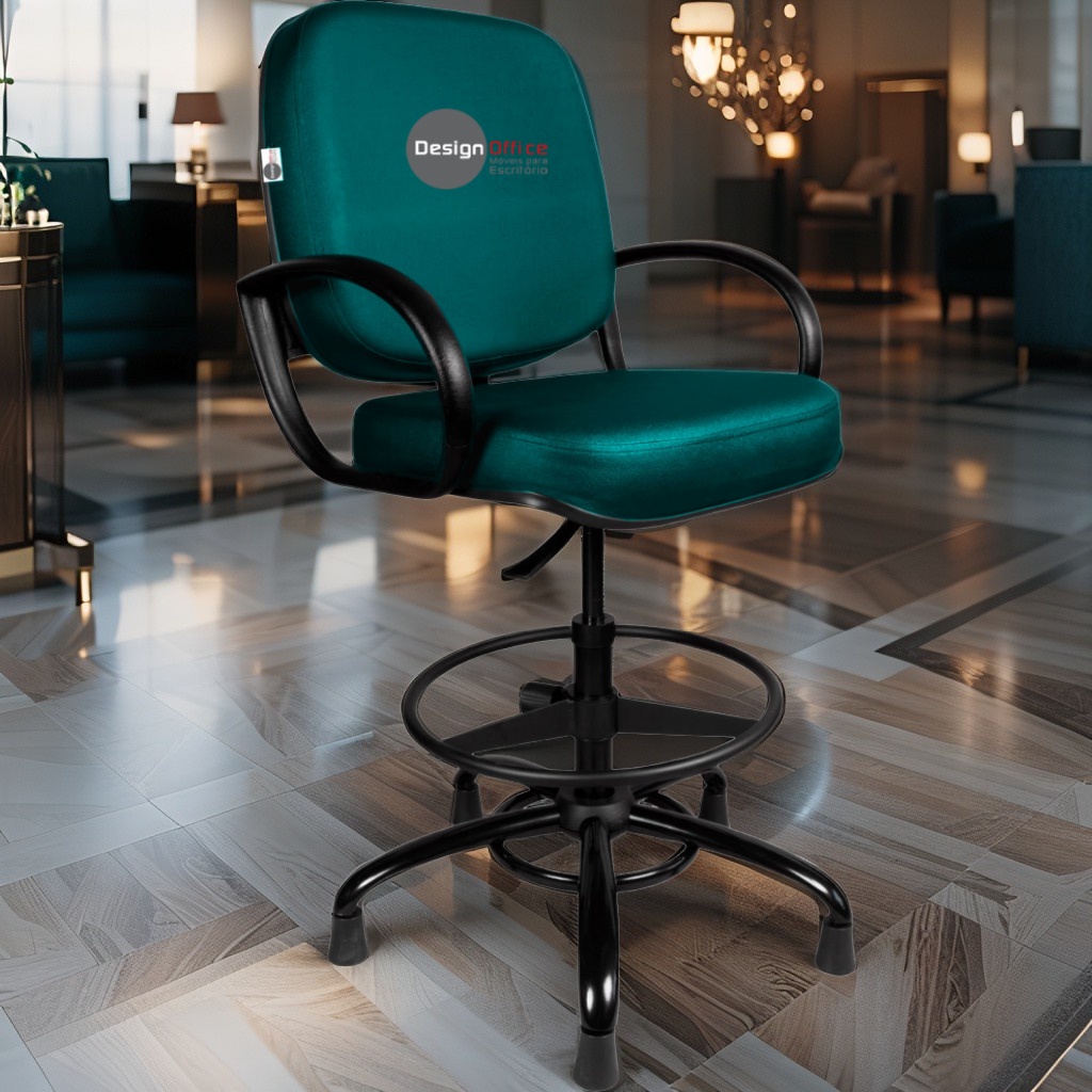 Cadeira Caixa Alta com Aro que Suporta até 250kg Giratória para Porteiros e Obesos, ideal para Portaria de Prédios e Condomínios Tonalidade da Cor do Assento e Encosto: Verde Marca: Design Office Móveis – Revestimento do Assento e Encosto: Material Sintético – Linha Plus Size