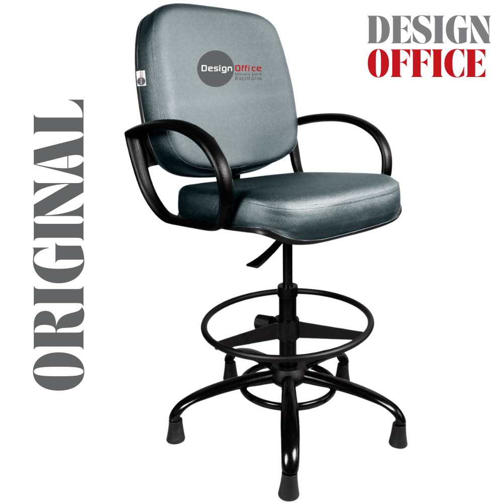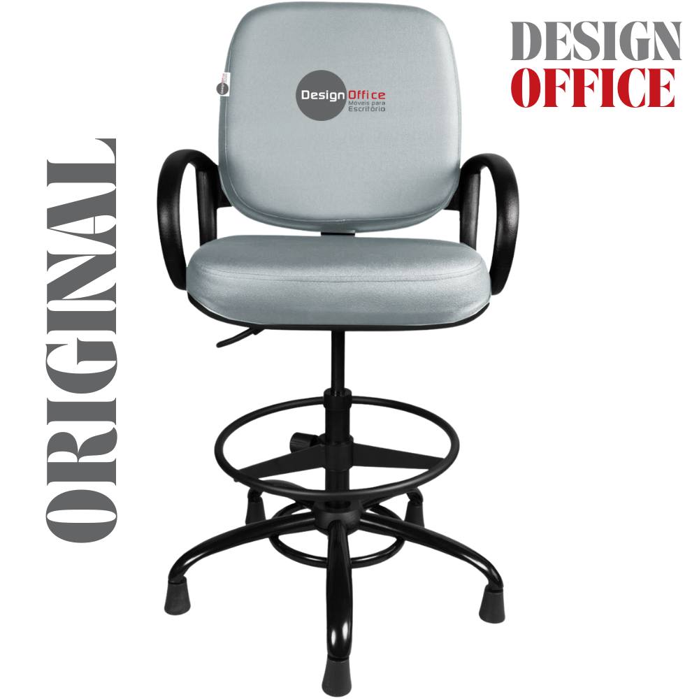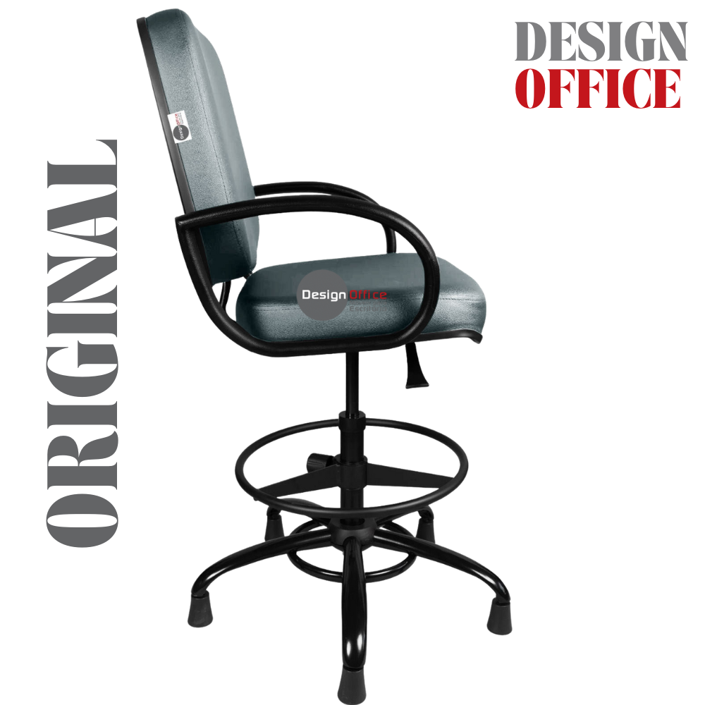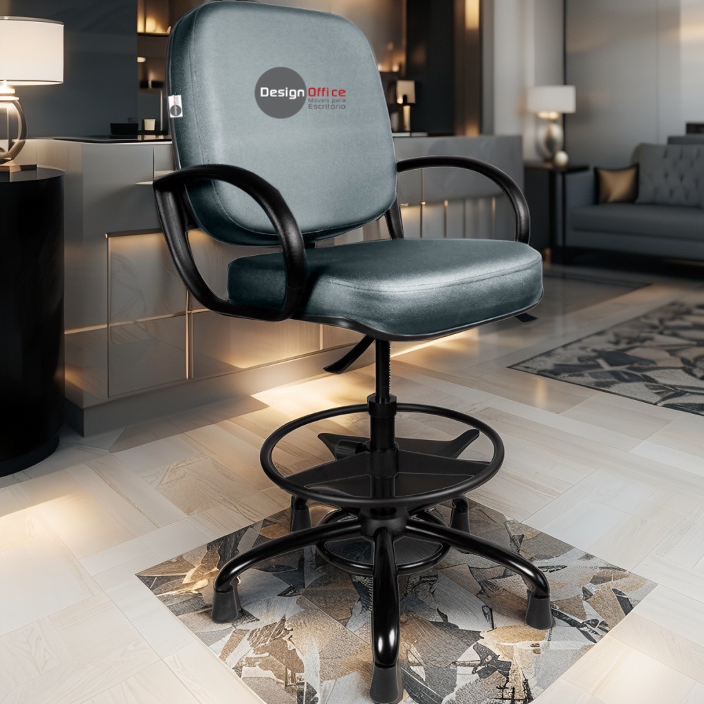 Cadeira Caixa Alta com Aro que Suporta até 250kg Giratória para Porteiros e Obesos, ideal para Portaria de Prédios e Condomínios Tonalidade da Cor do Assento e Encosto: Cinza Claro Marca: Design Office Móveis – Revestimento do Assento e Encosto: Material Sintético – Linha Plus Size