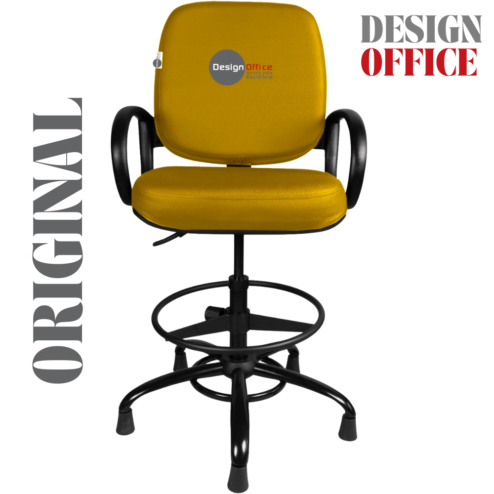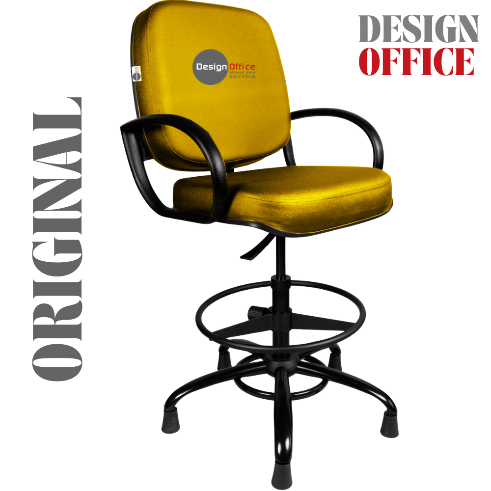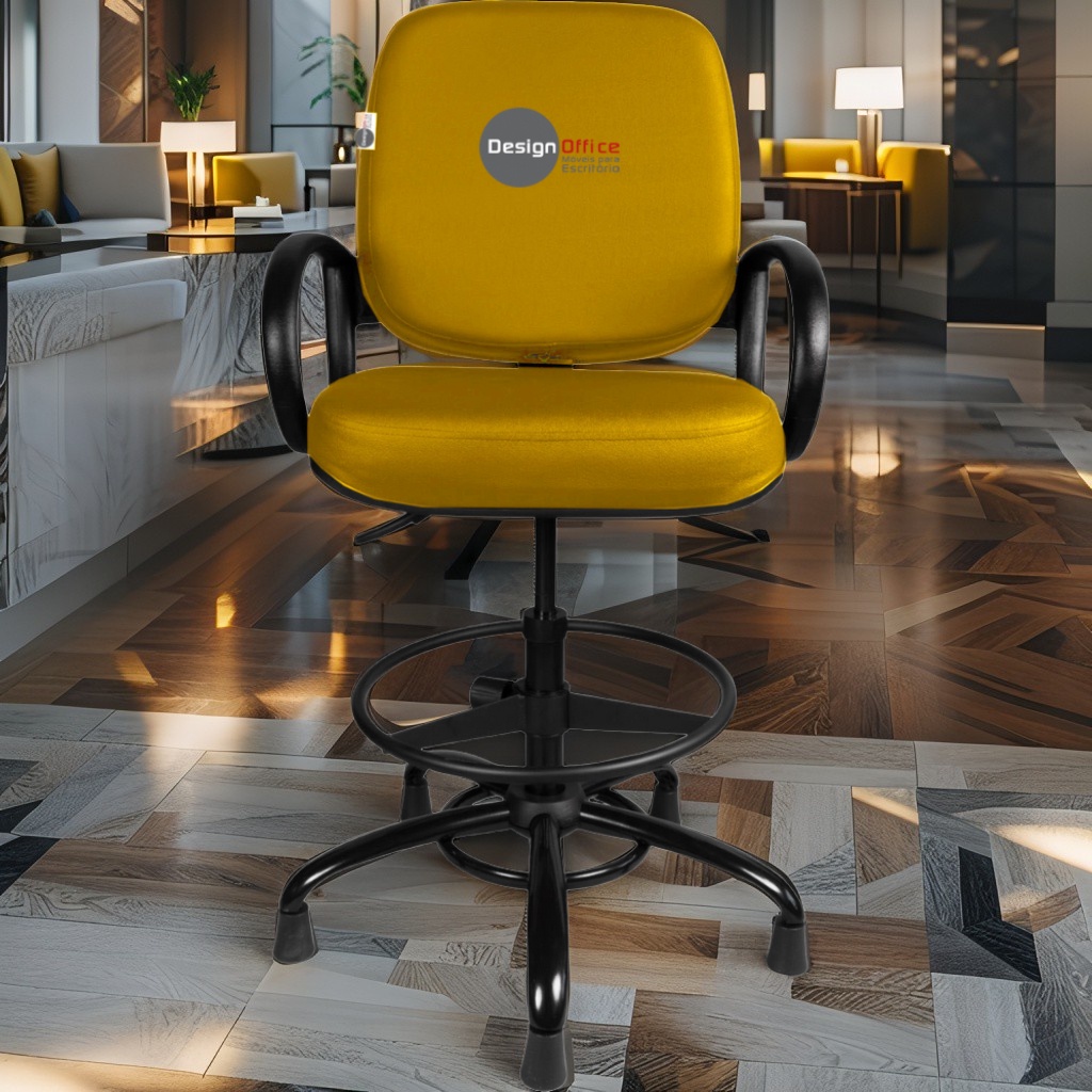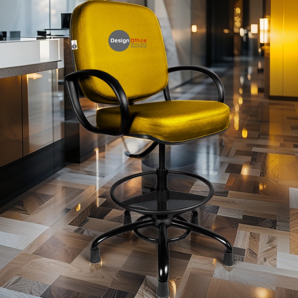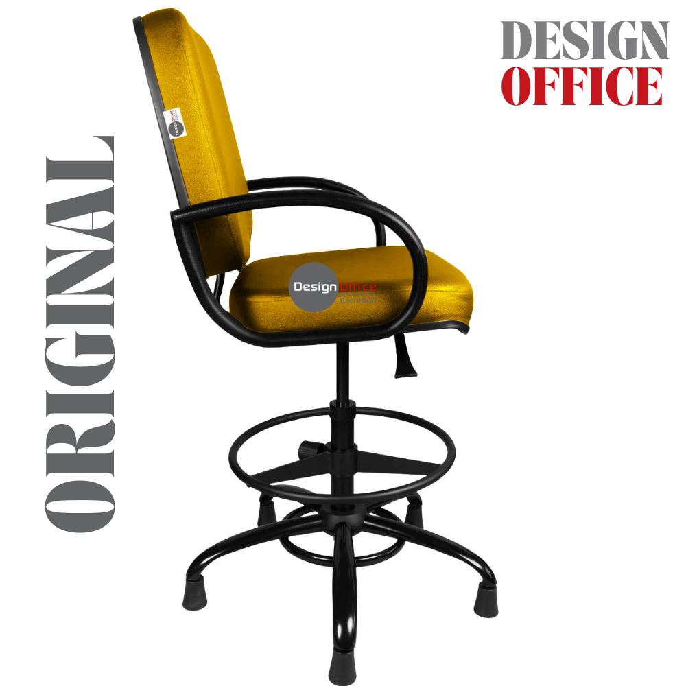 Cadeira Caixa Alta com Aro que Suporta até 250kg Giratória para Porteiros e Obesos, ideal para Portaria de Prédios e Condomínios Tonalidade da Cor do Assento e Encosto: Amarelo Mostarda Marca: Design Office Móveis – Revestimento do Assento e Encosto: Material Sintético – Linha Plus Size