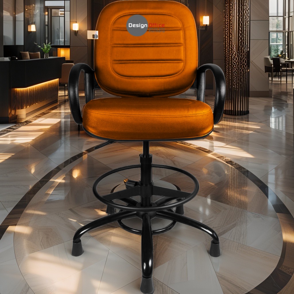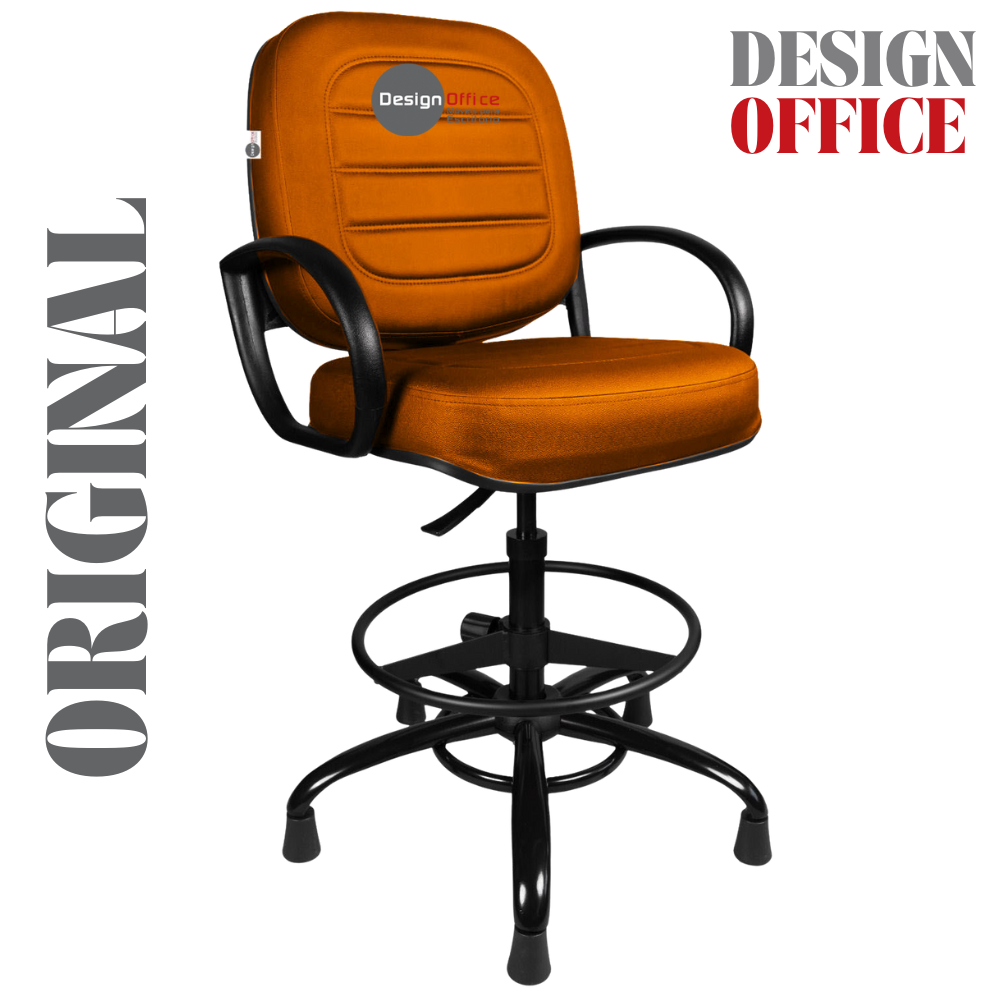Cadeira Caixa Alta com Aro que Suporta até 250kg Giratória para Porteiros e Obesos, ideal para Portaria de Prédios e Condomínios Tonalidade da Cor do Assento e Encosto: Vermelho Telha Marca: Design Office Móveis – Revestimento do Assento e Encosto: Material Sintético – Linha Plus Size