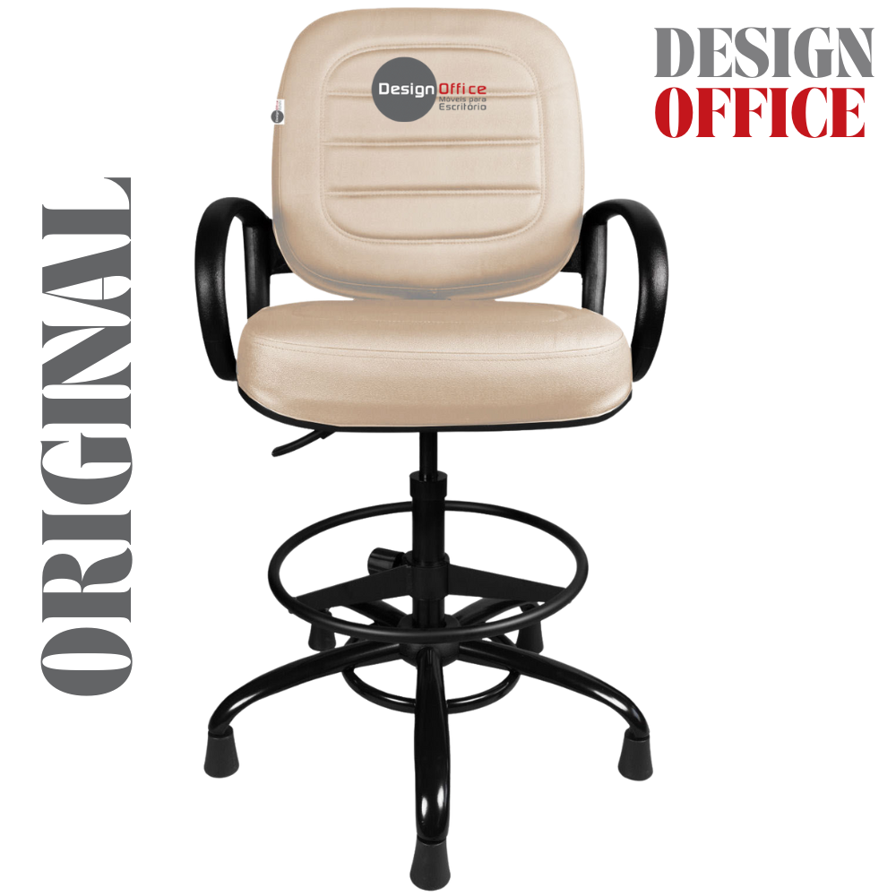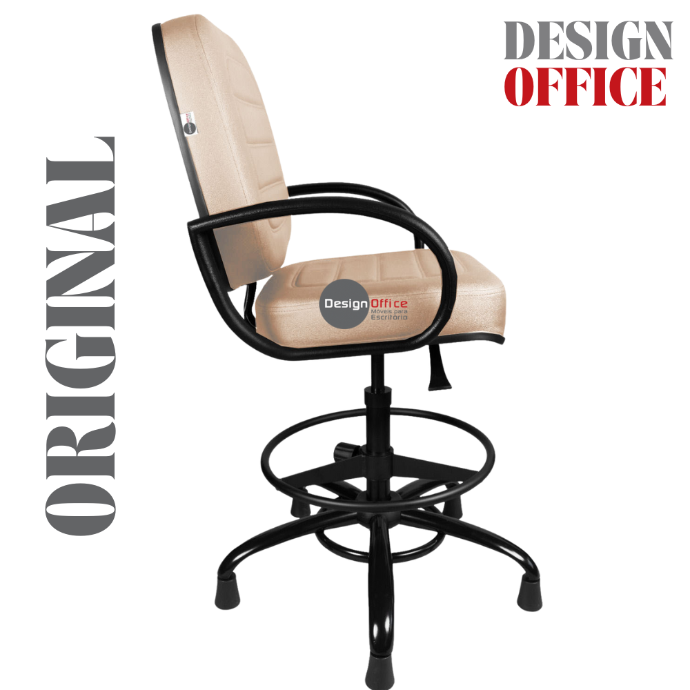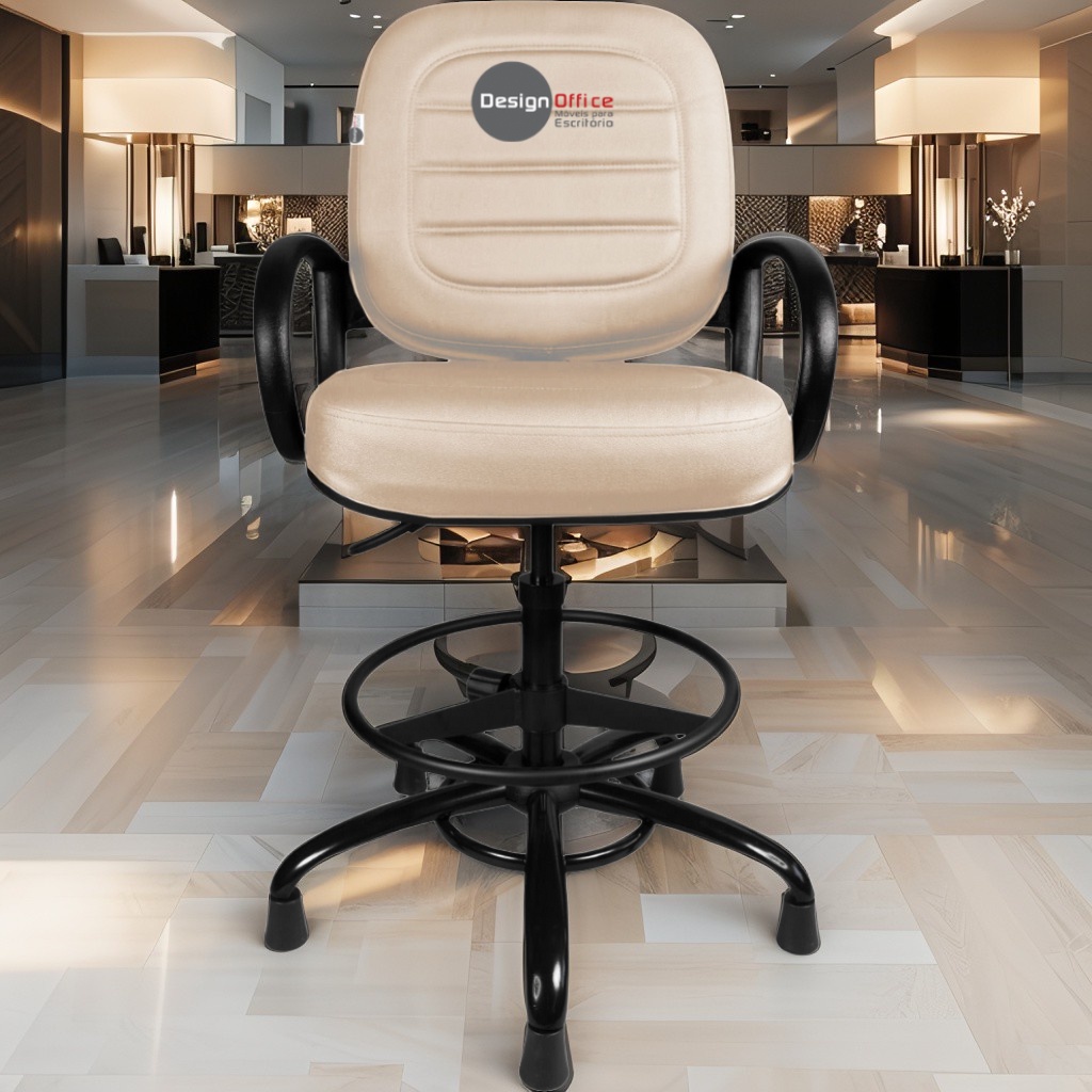 Cadeira Caixa Alta com Aro que Suporta até 250kg Giratória para Porteiros e Obesos, ideal para Portaria de Prédios e Condomínios Tonalidade da Cor do Assento e Encosto: Bege –  Marca: Design Office Móveis – Revestimento do Assento e Encosto: Material Sintético – Linha Plus Size