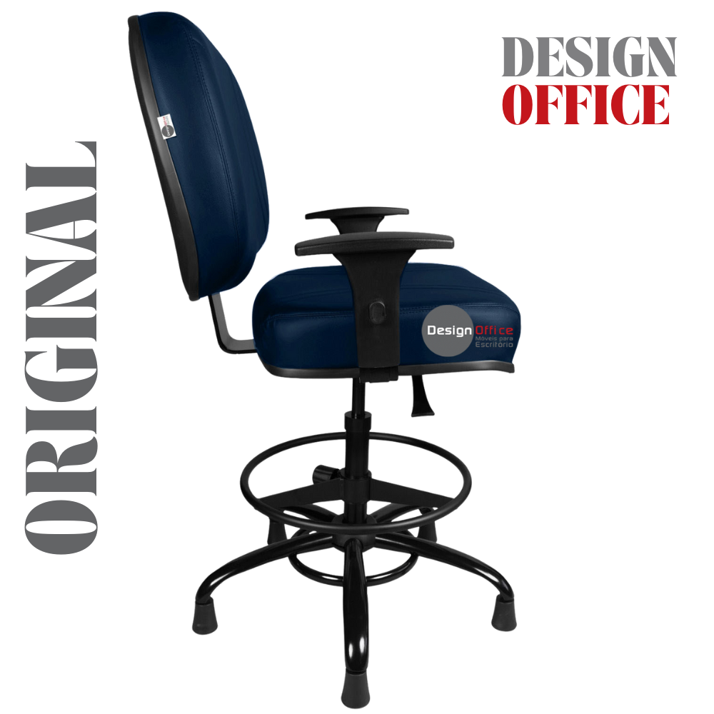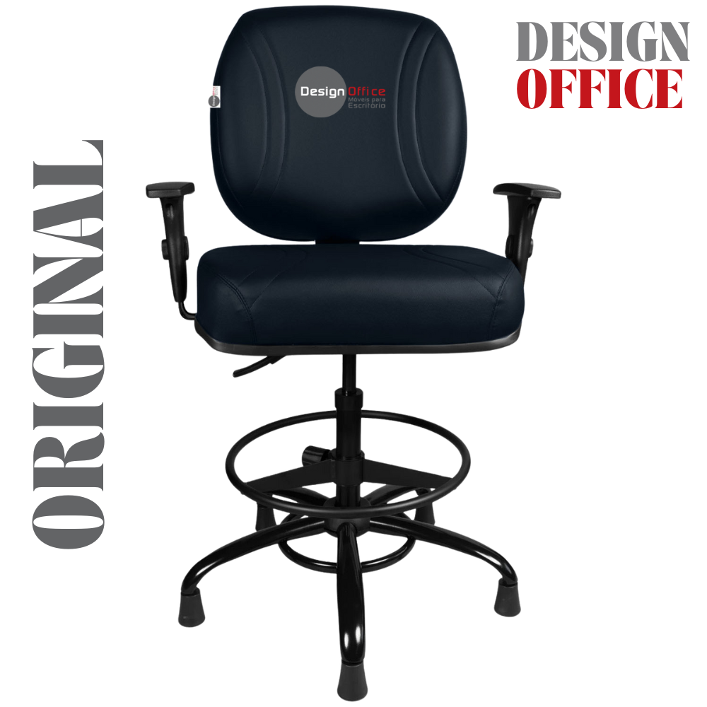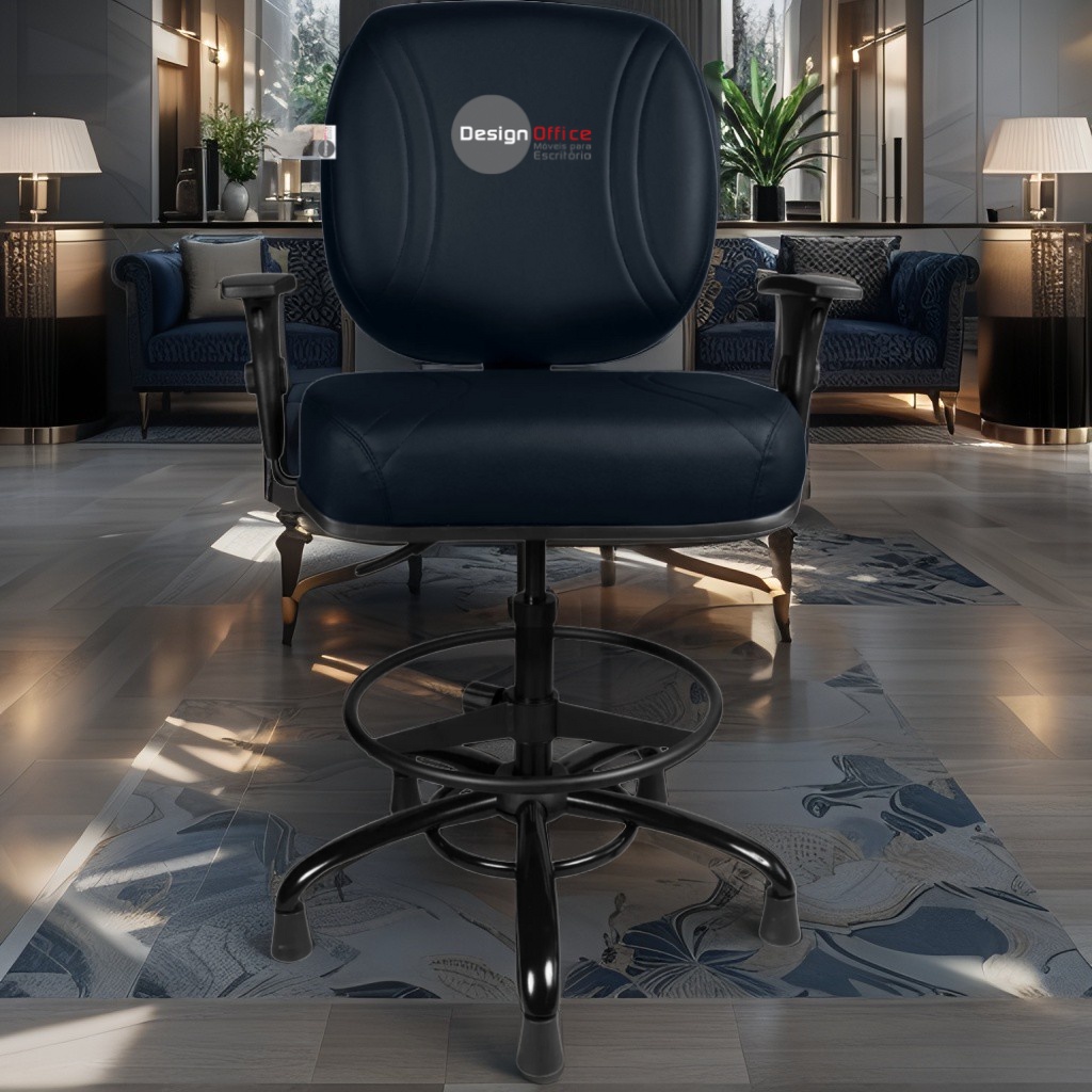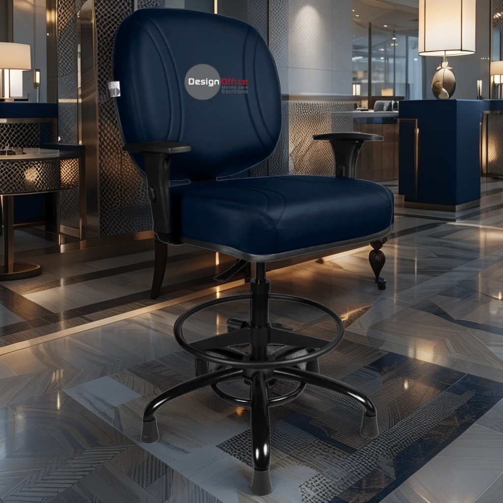 Cadeira Caixa Alta com Aro que Suporta até 250kg Giratória para Porteiros e Obesos, ideal para Portaria de Prédios e Condomínios Tonalidade da Cor do Assento e Encosto: Azul Marinho – Marca: Design Office Móveis – Revestimento do Assento e Encosto: Material Sintético
