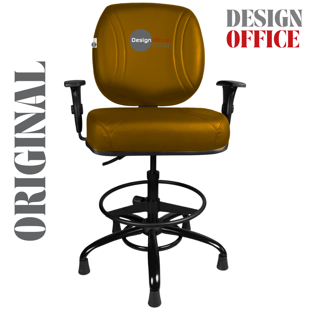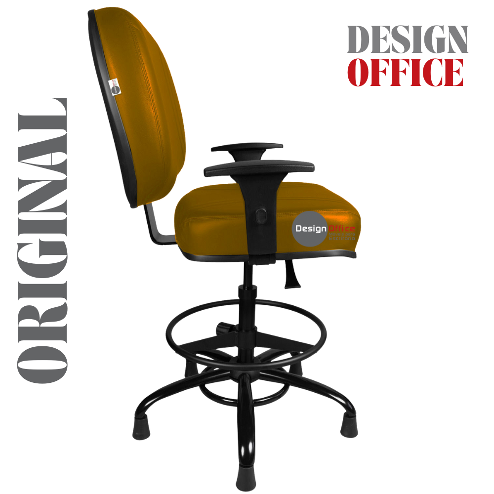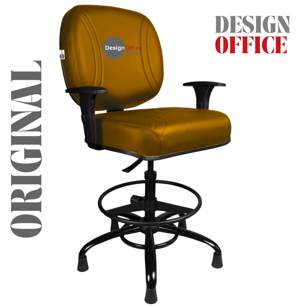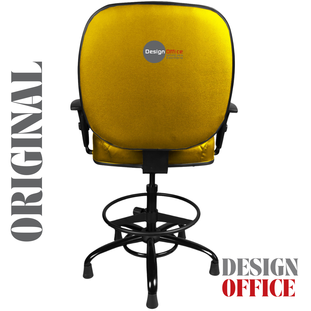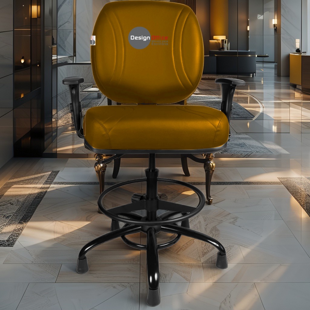 Cadeira Caixa Alta com Aro que Suporta até 250kg Giratória para Porteiros e Obesos, ideal para Portaria de Prédios e Condomínios Tonalidade da Cor do Assento e Encosto: Amarelo Mostarda – Marca: Design Office Móveis – Revestimento do Assento e Encosto: Material Sintético