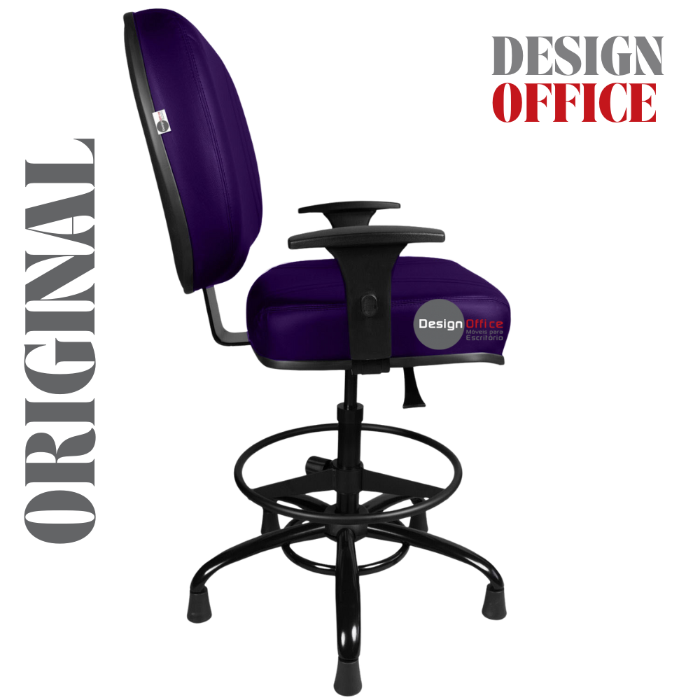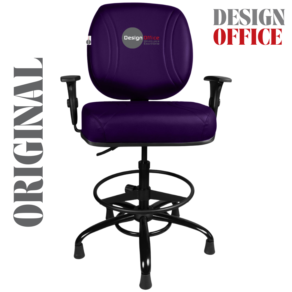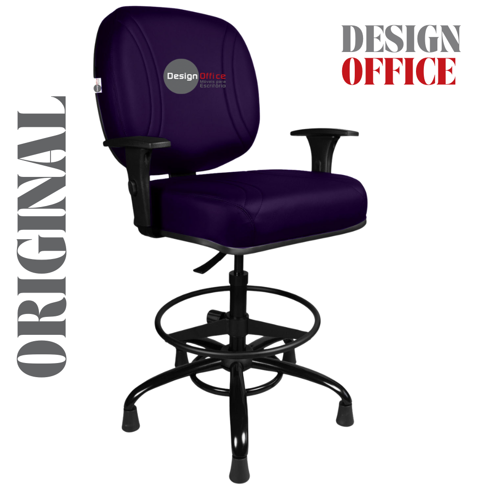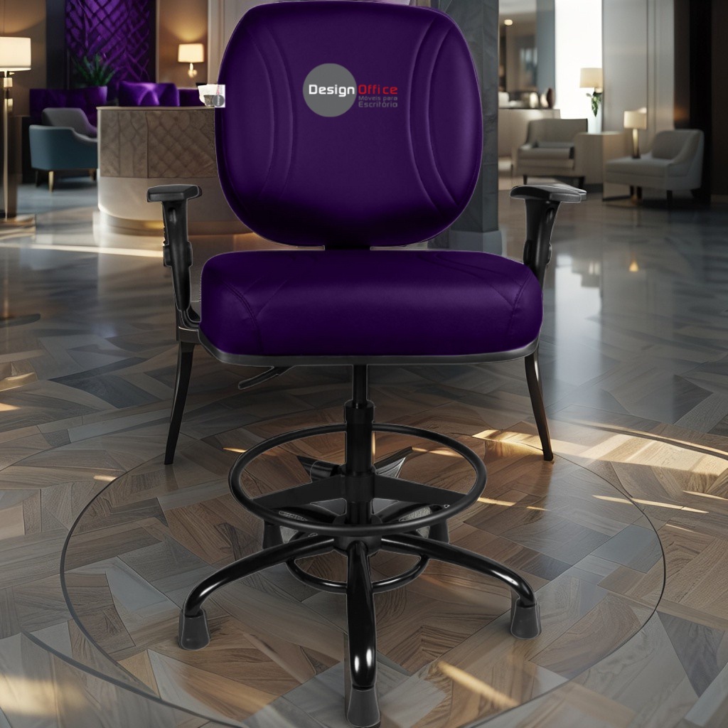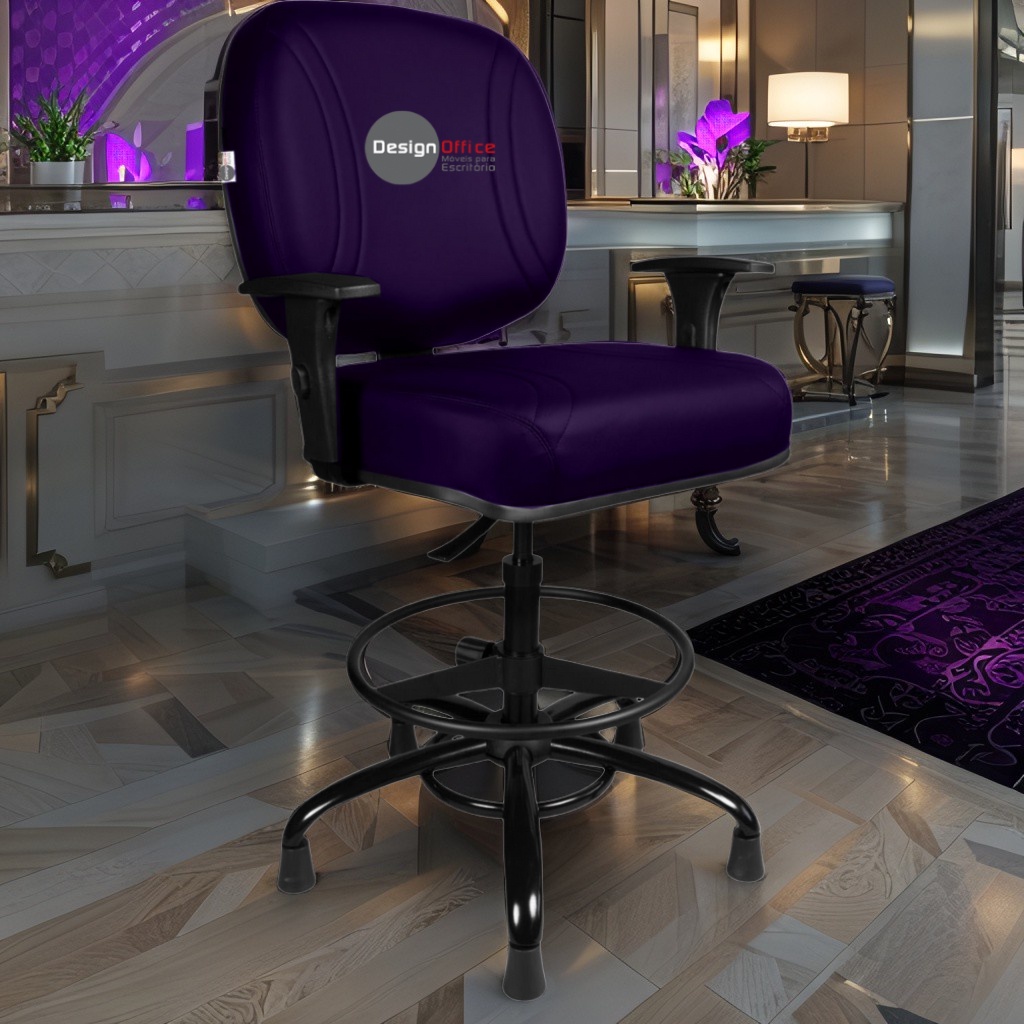 Cadeira Caixa Alta com Aro que Suporta até 250kg Giratória para Porteiros e Obesos, ideal para Portaria de Prédios e Condomínios Tonalidade da Cor do Assento e Encosto: Roxo – Marca: Design Office Móveis – Revestimento do Assento e Encosto: Material Sintético