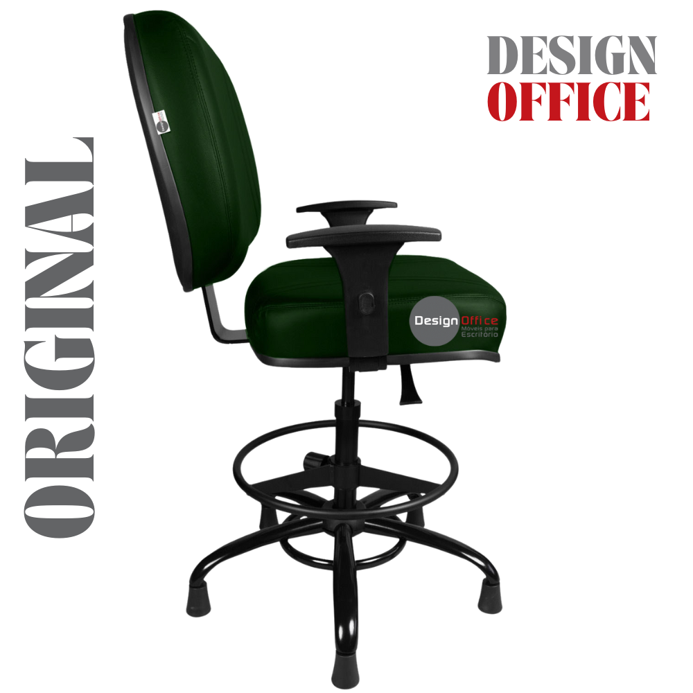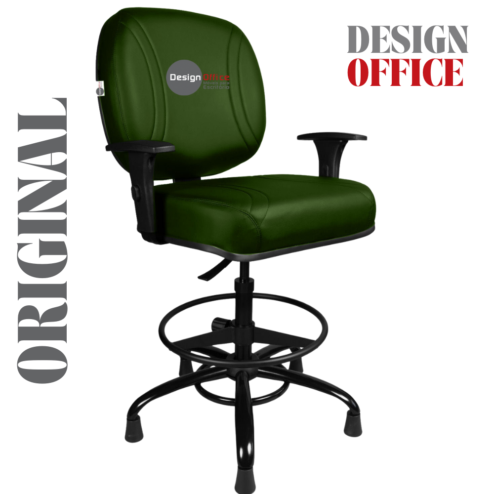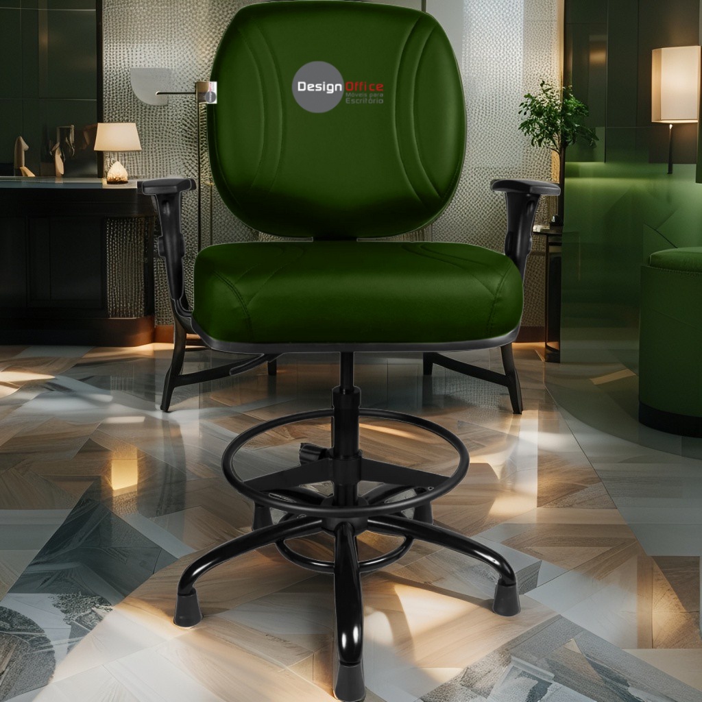 Cadeira Caixa Alta com Aro que Suporta até 250kg Giratória para Porteiros e Obesos, ideal para Portaria de Prédios e Condomínios Tonalidade da Cor do Assento e Encosto: Verde Escuro – Marca: Design Office Móveis – Revestimento do Assento e Encosto: Material Sintético