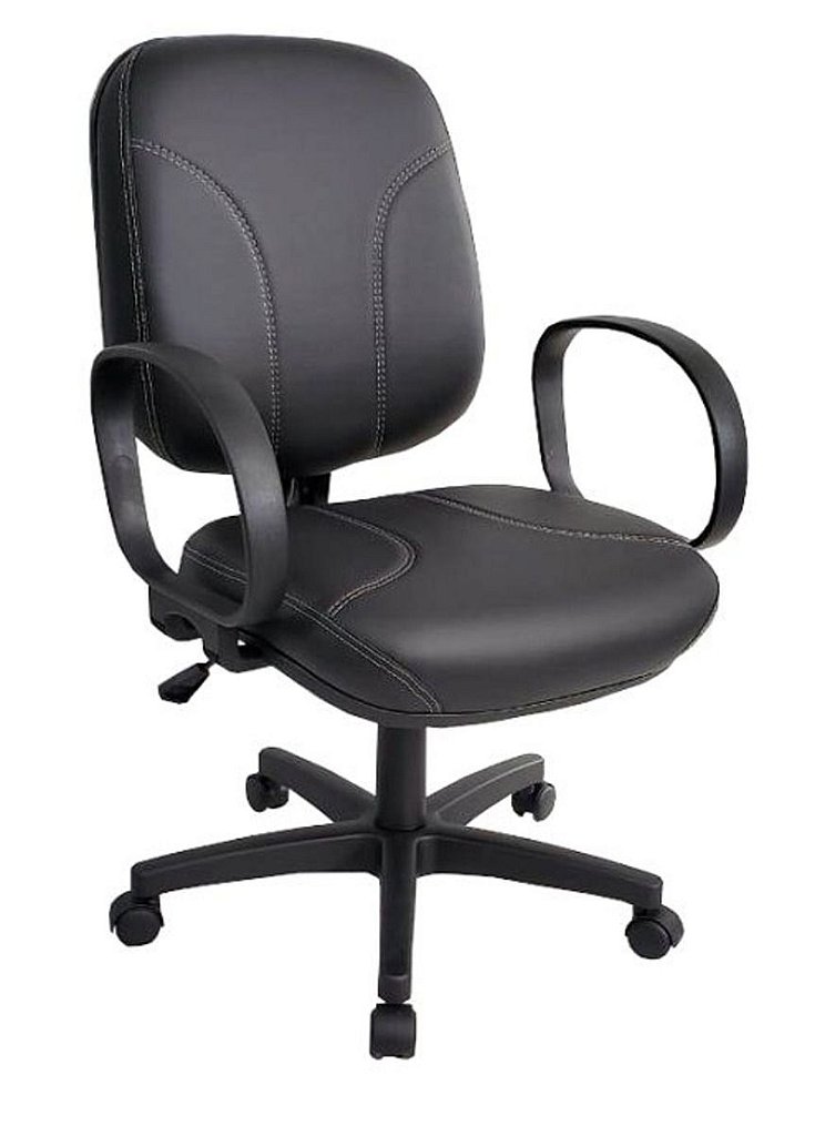 Poltrona Diretor Giratória Linha Parma com braço fixo, e detalhes com costura no assento e encosto.