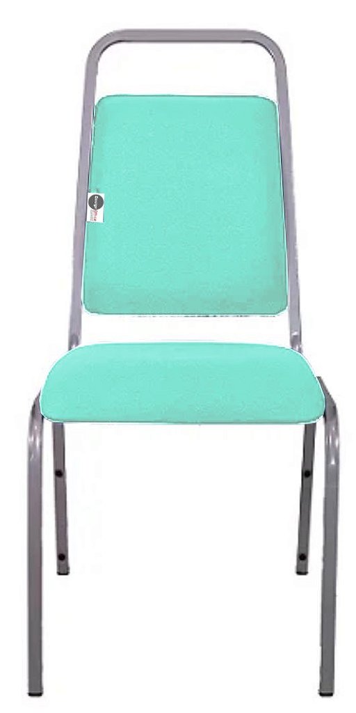 Cadeira Empilhável para Hotelaria Linha Hotel Fremont  – Tonalidade da Cor do Assento e Encosto: Verde Água – Marca: Design Office Móveis – Revestimento do Assento e Encosto: Material Sintético  Cor da Estrutura: Cinza
