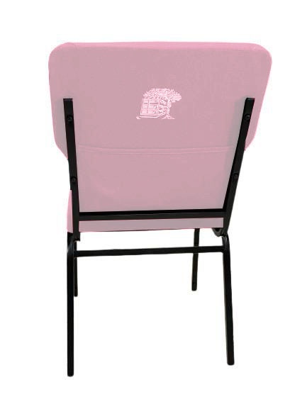Cadeira Empilhável para Igrejas Evangélicas Linha Church com porta Envelopes atrás do Encosto – Tonalidade da Cor do Assento e Encosto: Rosa Claro –  Marca: Design Office Móveis – Revestimento do Assento e Encosto: Material Sintético – Opcional: Com ou sem bordado atrás do encosto da cadeira, a critério do cliente.
