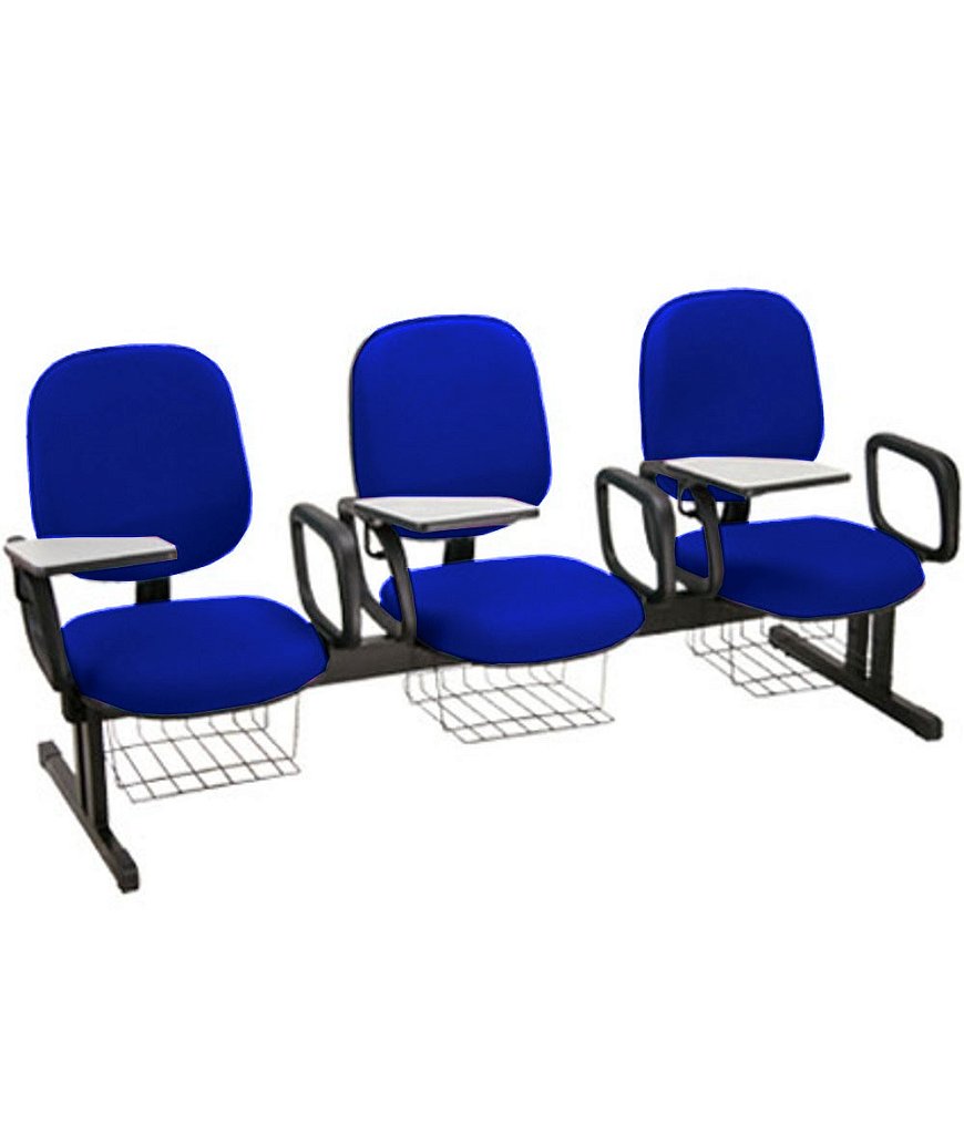 Estrutura da Cadeira: Fixa Modelo em Longarina com 03 lugares com Braços Fixos, prancheta escamoteável e grade porta livros.