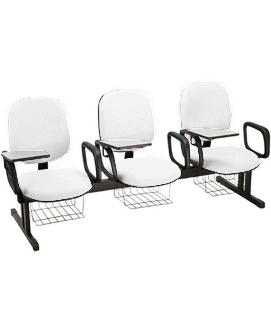 Estrutura da Cadeira: Fixa Modelo em Longarina com 03 lugares com Braços Fixos, prancheta escamoteável e grade porta livros.