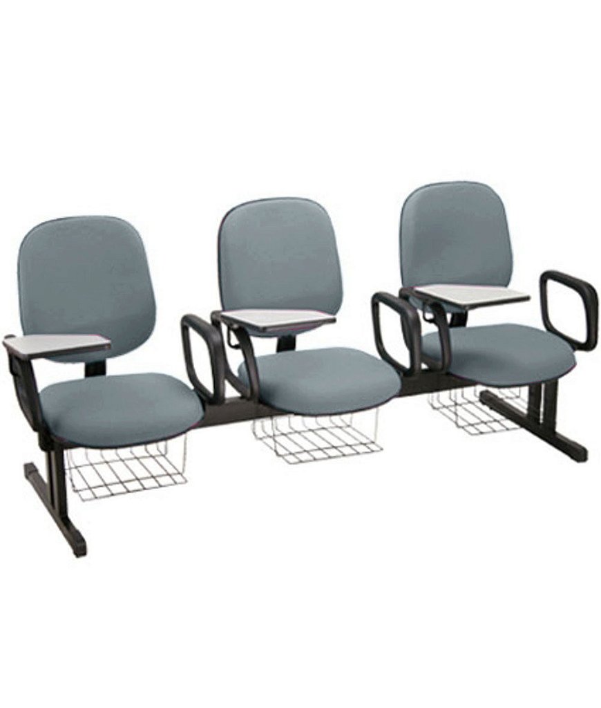 Estrutura da Cadeira: Fixa Modelo em Longarina com 03 lugares com Braços Fixos, prancheta escamoteável e grade porta livros.