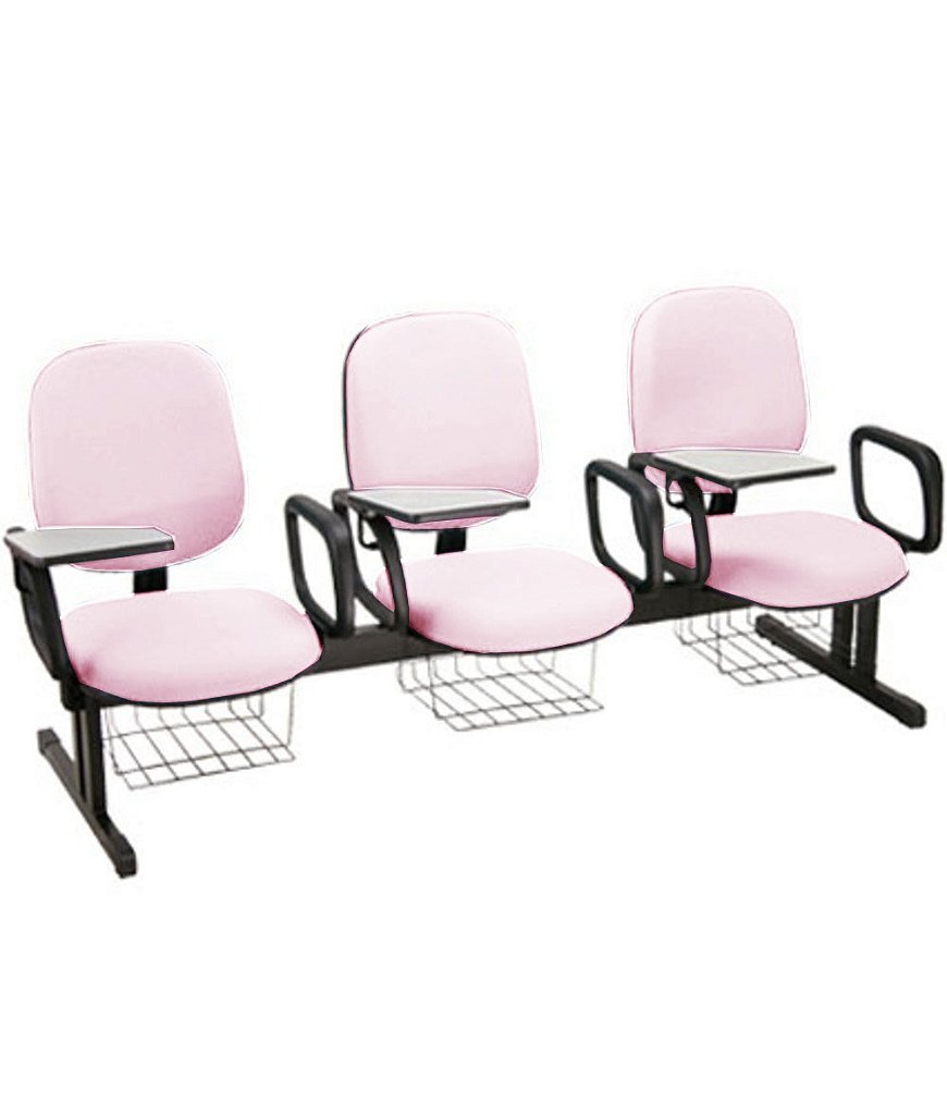 Cadeira Diretor Universitária com prancheta escamoteável em longarina para 03 lugares para Escolas Linha Uno – Tonalidade da Cor do Assento e Encosto: Rosa Claro – Marca: Design Office Móveis – Revestimento do Assento e Encosto: Material Sintético