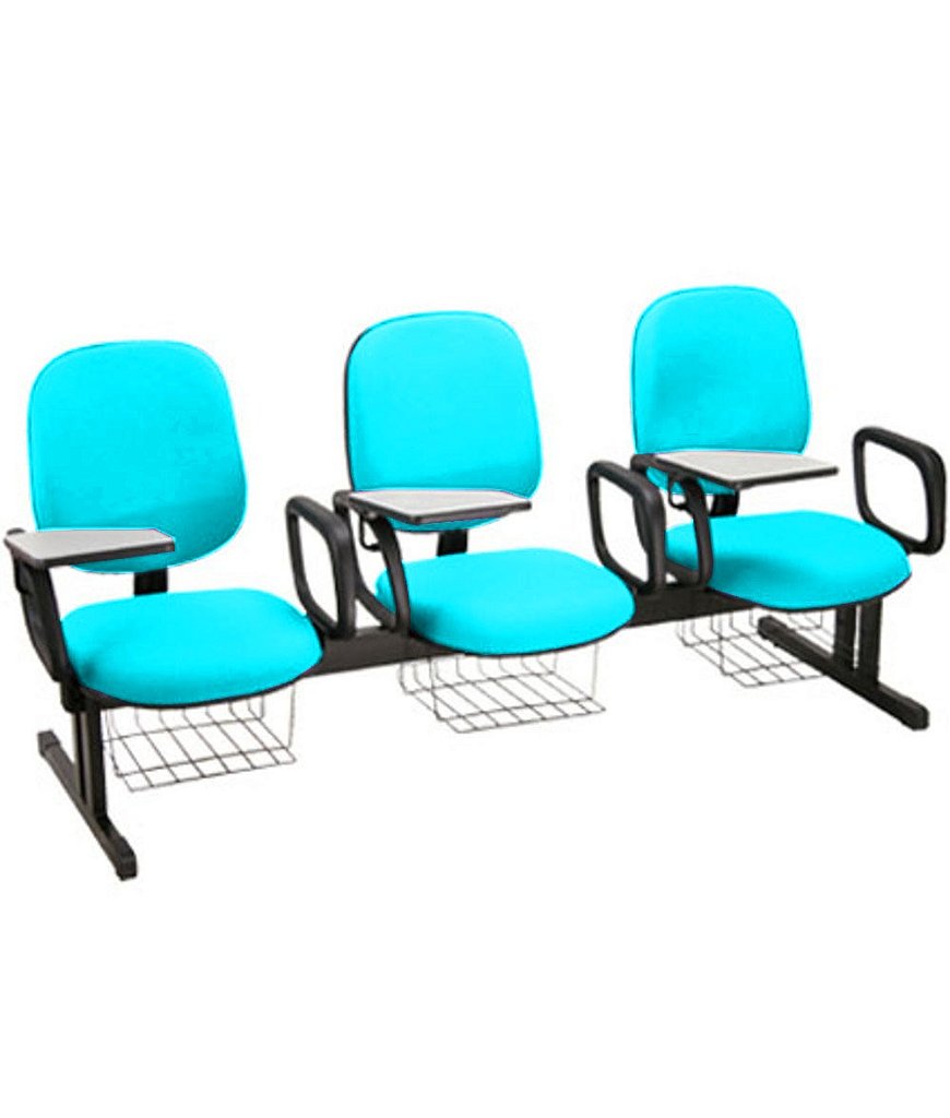 Estrutura da Cadeira: Fixa Modelo em Longarina com 03 lugares com Braços Fixos, prancheta escamoteável e grade porta livros.