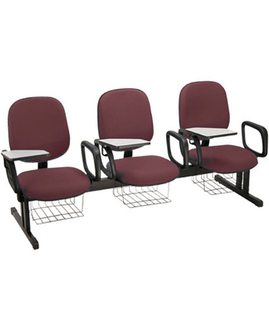 Cadeira Diretor Universitária com prancheta escamoteável em longarina para 03 lugares para Escolas Linha Uno – Tonalidade da Cor do Assento e Encosto: Vermelho Vinho – Marca: Design Office Móveis – Revestimento do Assento e Encosto: Tecido