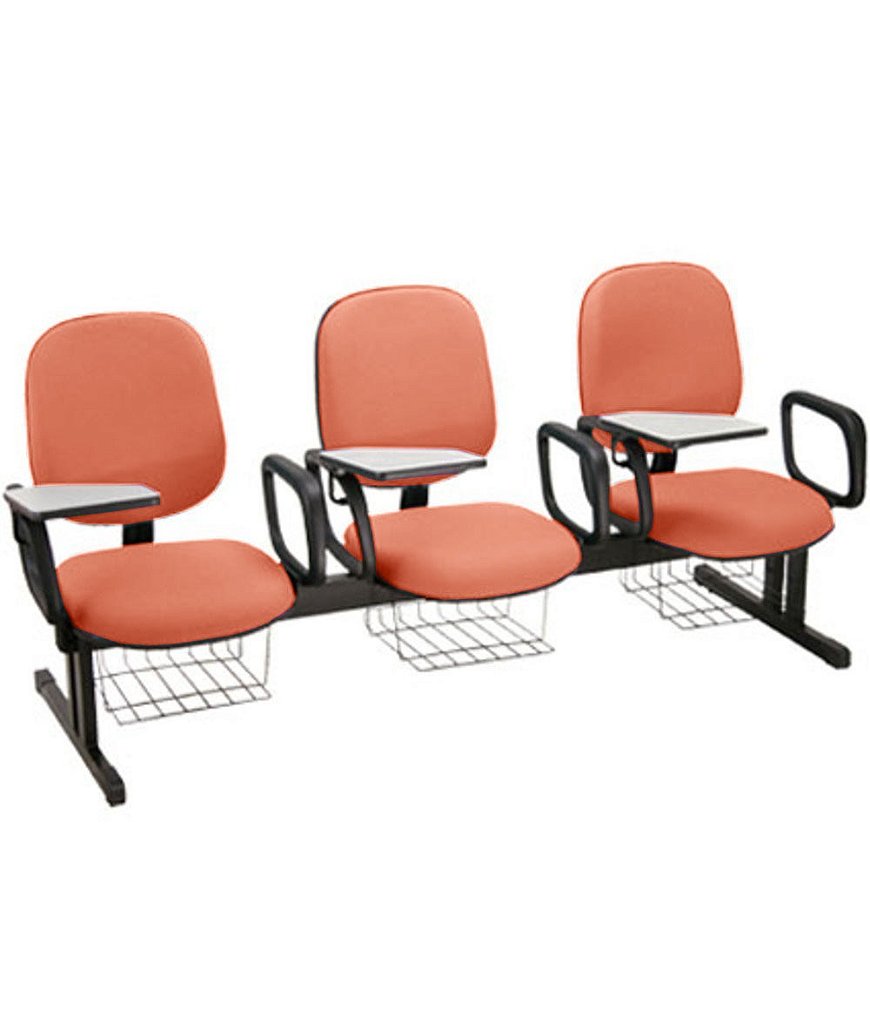 Estrutura da Cadeira: Fixa Modelo em Longarina com 03 lugares com Braços Fixos, prancheta escamoteável e grade porta livros.