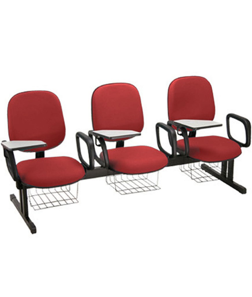 Estrutura da Cadeira: Fixa Modelo em Longarina com 03 lugares com Braços Fixos, prancheta escamoteável e grade porta livros.