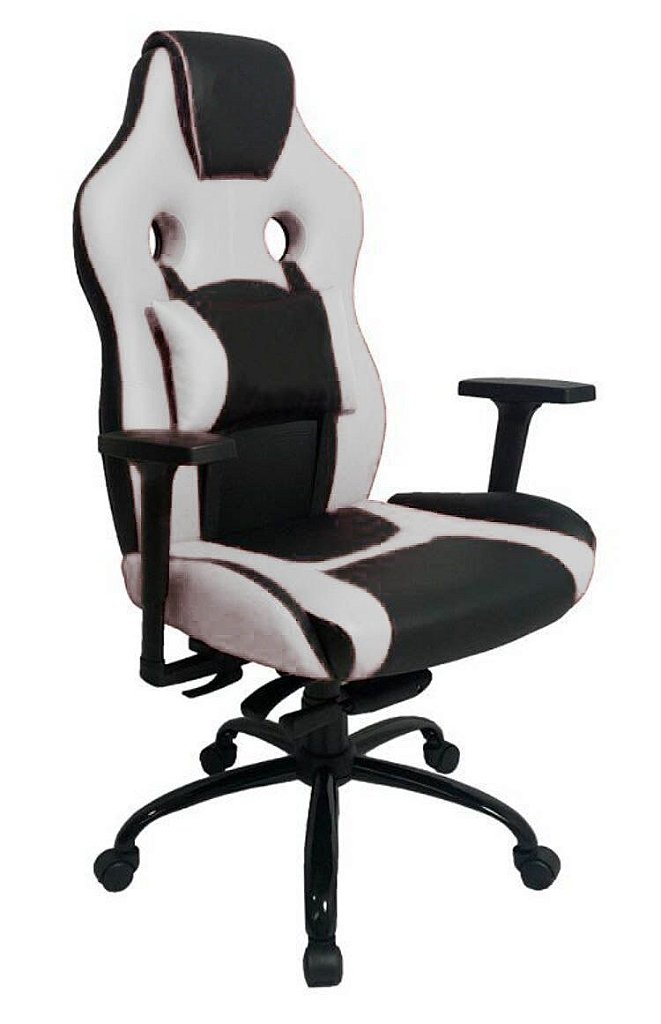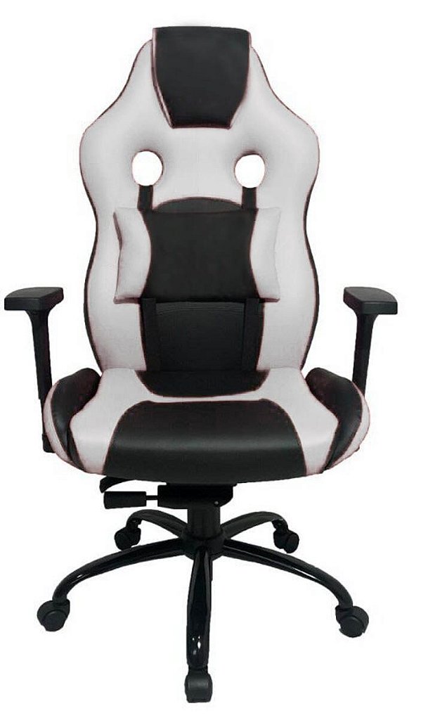 Cadeira Gamer para Escritório ou Home Office com almofada removível no encosto – Cor Branco com Preto – Tonalidade da Cor: Branco com Preto – Marca: Design Office Móveis