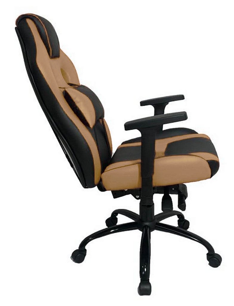 Cadeira Gamer para Escritório ou Home Office com almofada removível no encosto – Cor Caramelo com Preto – Tonalidade da Cor: Caramelo com Preto – Marca: Design Office Móveis