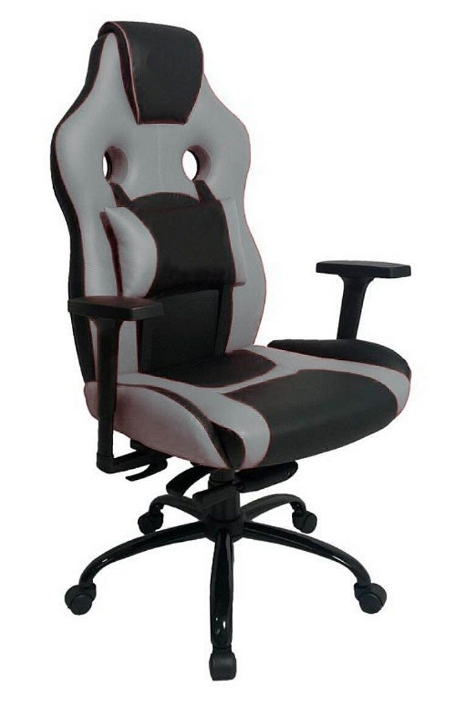 Cadeira Gamer para Escritório ou Home Office com almofada removível no encosto – Cor Cinza com Preto – Tonalidade da Cor: Cinza com Preto – Marca: Design Office Móveis