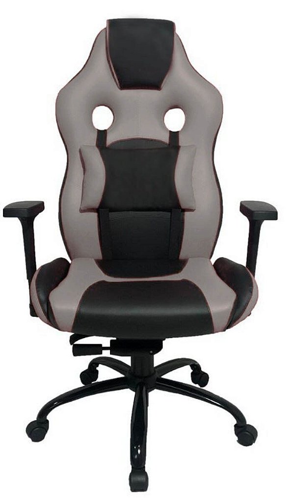 Cadeira Gamer para Escritório ou Home Office com almofada removível no encosto – Cor Cinza Claro com Preto – Tonalidade da Cor: Cinza Claro com Preto – Marca: Design Office Móveis