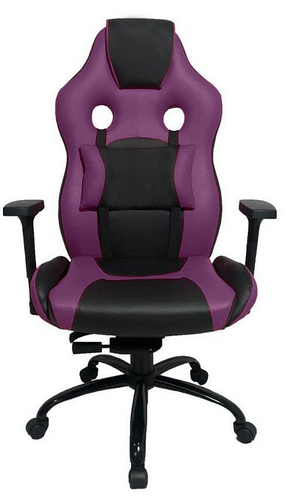 Cadeira Gamer para Escritório ou Home Office com almofada removível no encosto – Cor: Roxo com Preto – Tonalidade da Cor: Roxo com Preto – Marca: Design Office Móveis