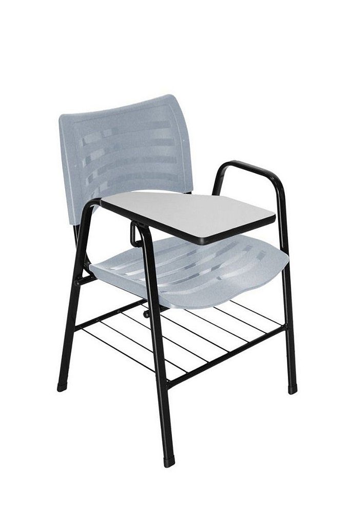 • Cadeira com braço Universitária com prancheta escamoteável e grade porta livros.