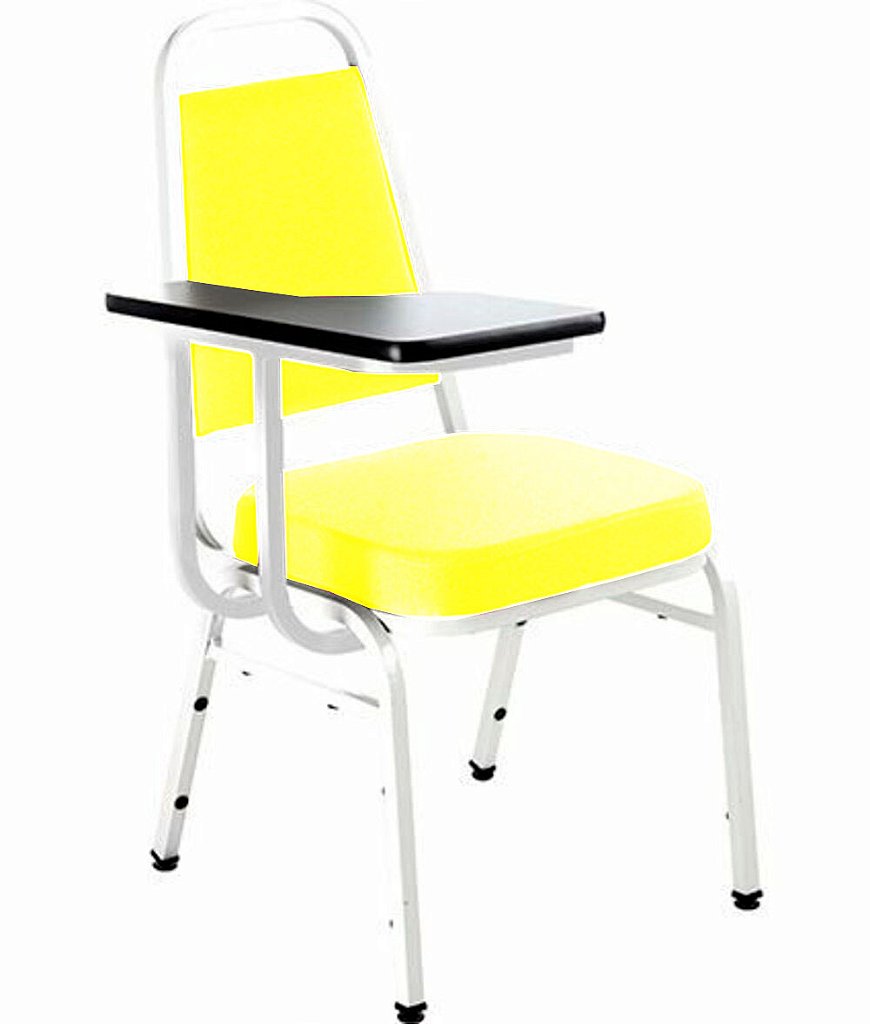 Cadeira Universitária Empilhável com Prancheta Linha Hotel Plus Amarelo Tonalidade da Cor: Amarelo –   Marca: Design Office Móveis  – Cadeira Universitária Empilhável com Prancheta  Linha Hotel Plus Amarelo
